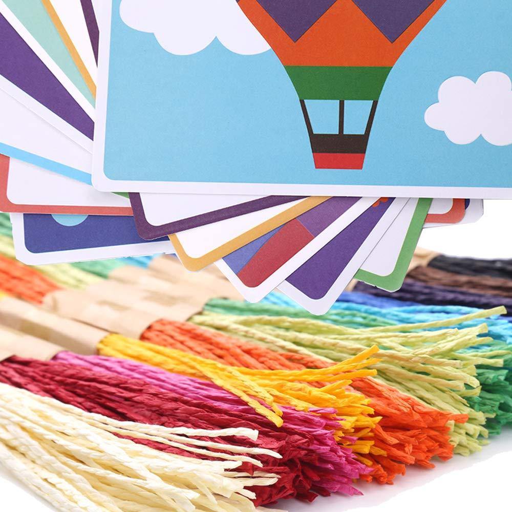 - Book some Package-- Contains 8 sheets of cartoon topic cards-A Owl, Flower Vase, Butterfly, Rainbow, Jellyfish, Elephant, Lion, and Hot Air Balloon; 12 color ropes each color about 40 pieces; A short wooden stick