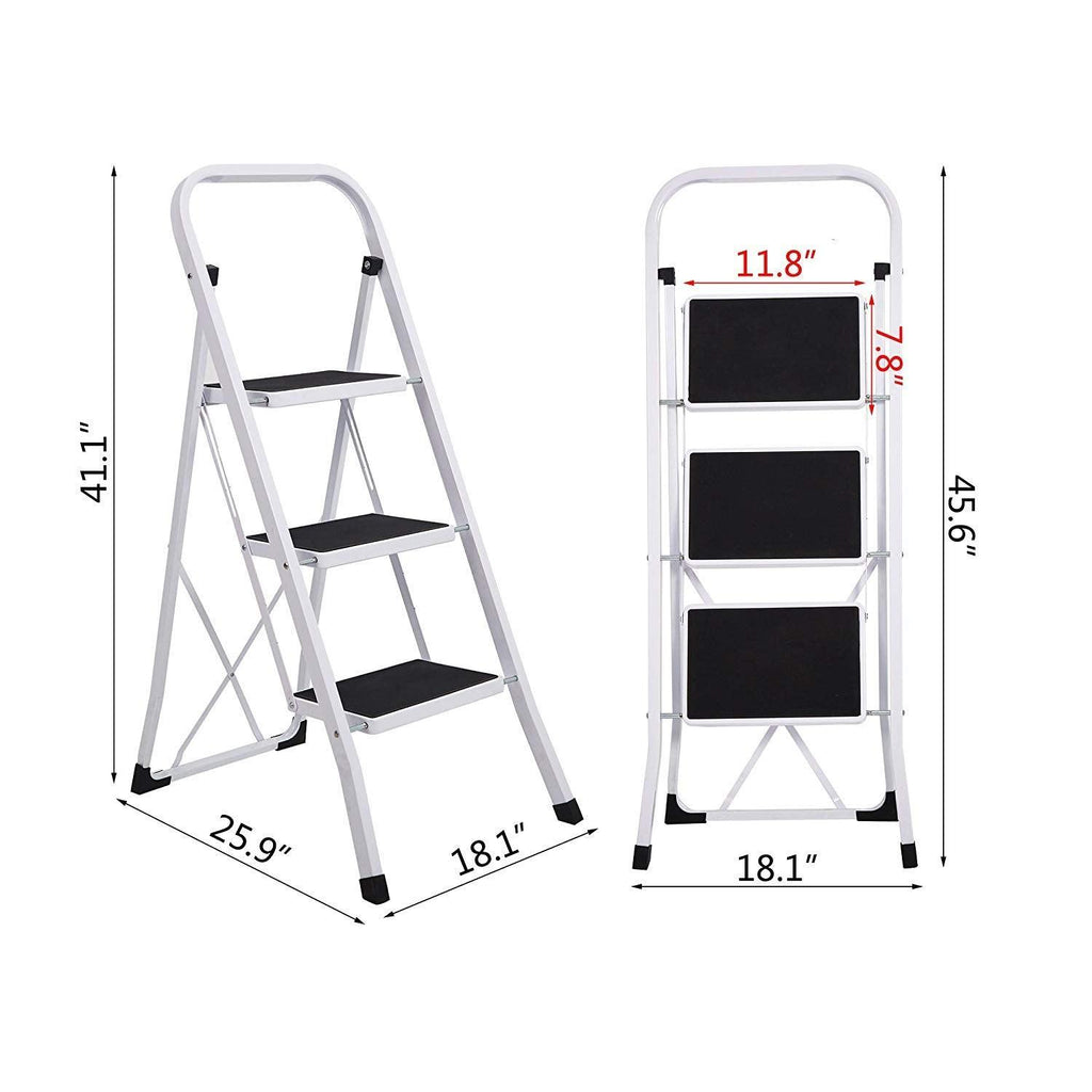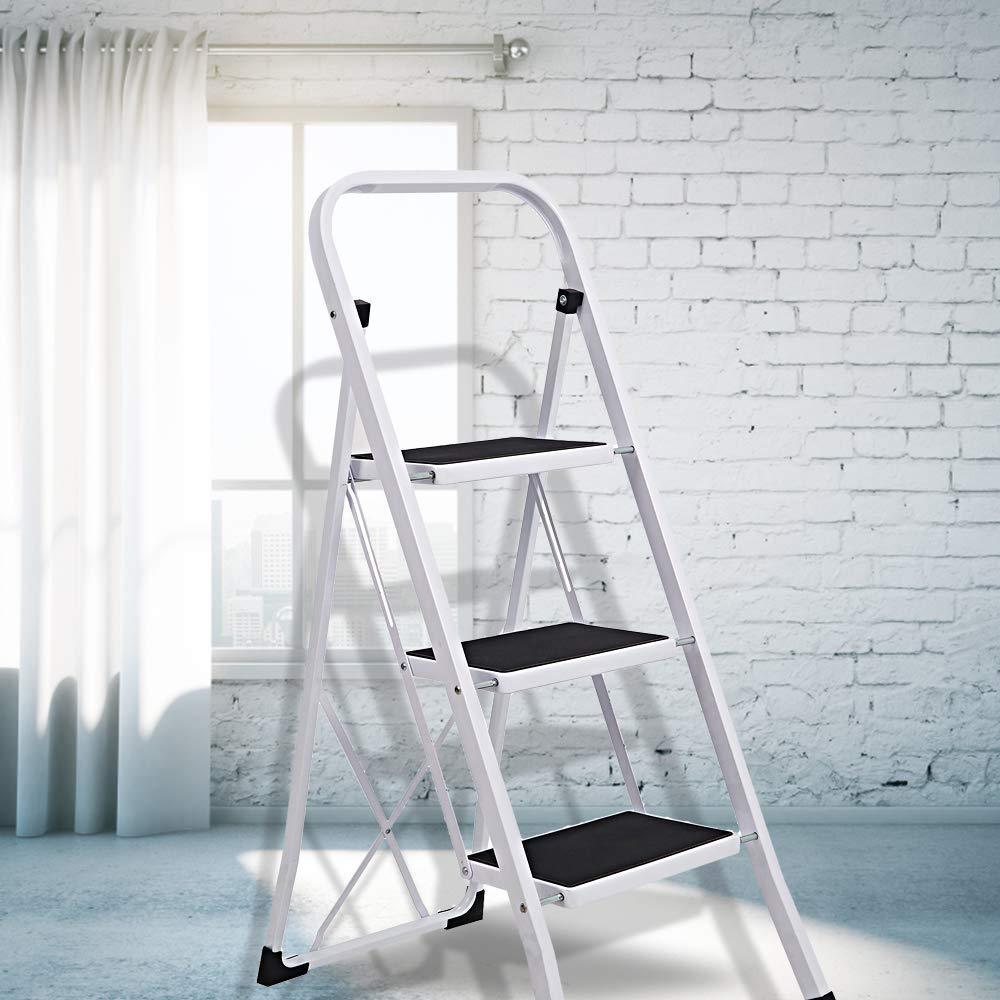 Our Bosonshop  3 Step Ladder has a white frame gives an attractive appearance, which matches well with home decorating. Whether you need the extra height for cleaning, painting or simply to reach up high. Folding 3 Step Stool also will be held up well to repeated use. It's an ideal choice for either your home or shop!