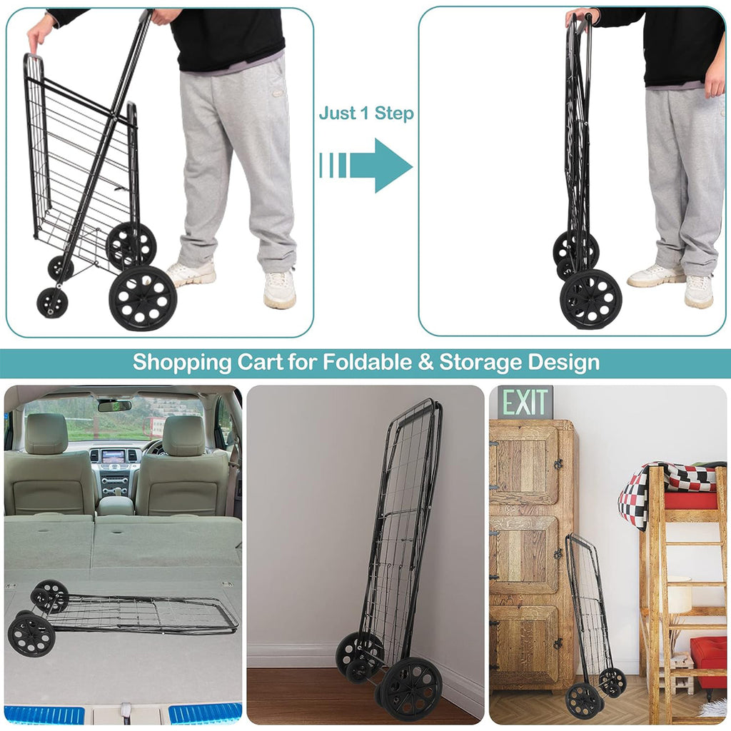 Multipurpose: The large space shopping cart is perfect for carrying groceries or anything else from here to there, can be used in grocery stores, laundromats, libraries, supermarkets, farmers markets, offices, gardens, gyms and more.
