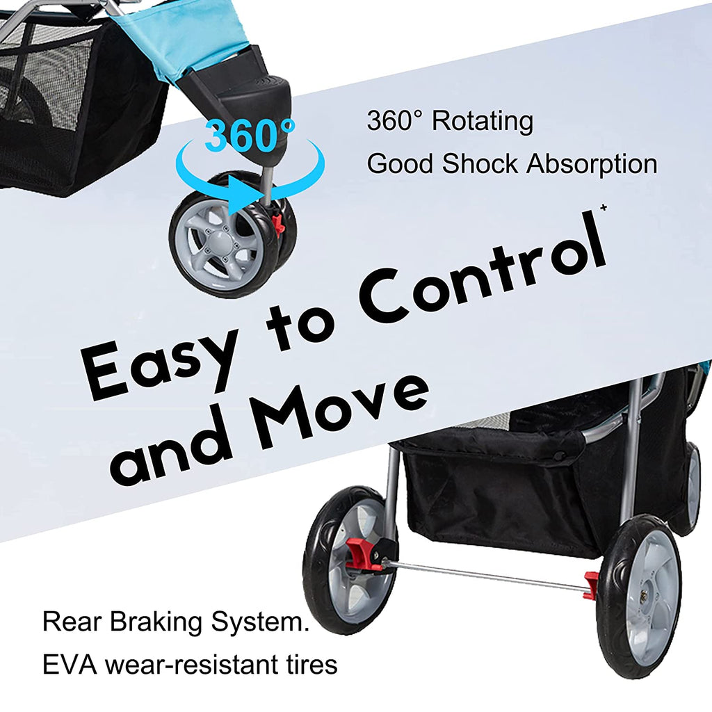 Extra space: Storage basket and Cup holders: it can store other pet supplies, such as pet food, also can store small items that we go a walk, such as snacks, water glasses, umbrellas, clothing, etc.