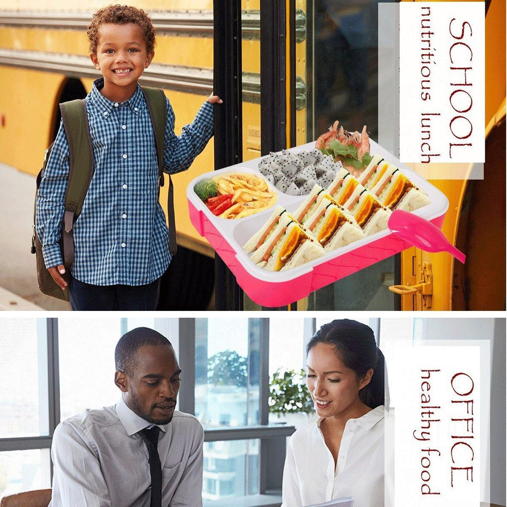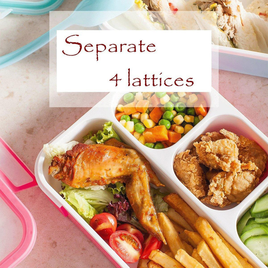 High quality BPA free material,safe and healthy. 4 food compartments with one spoon,t o keep healthy and well-balanced meals. Double layers design to keep better insulation,long lasting freshness and tasty. Lightweight and portable, easy to put into purse, backpack or briefcase for on the go portability. Microwave, freezer and dishwasher safe. Stain resistant and easy to clean, perfect for school,work and travel.