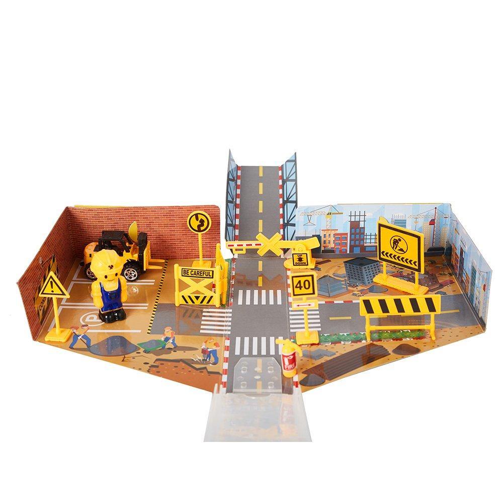 - Four subject for your choose,A complete working site play set with a mini die-cast vehicles(random style) and guidepost.