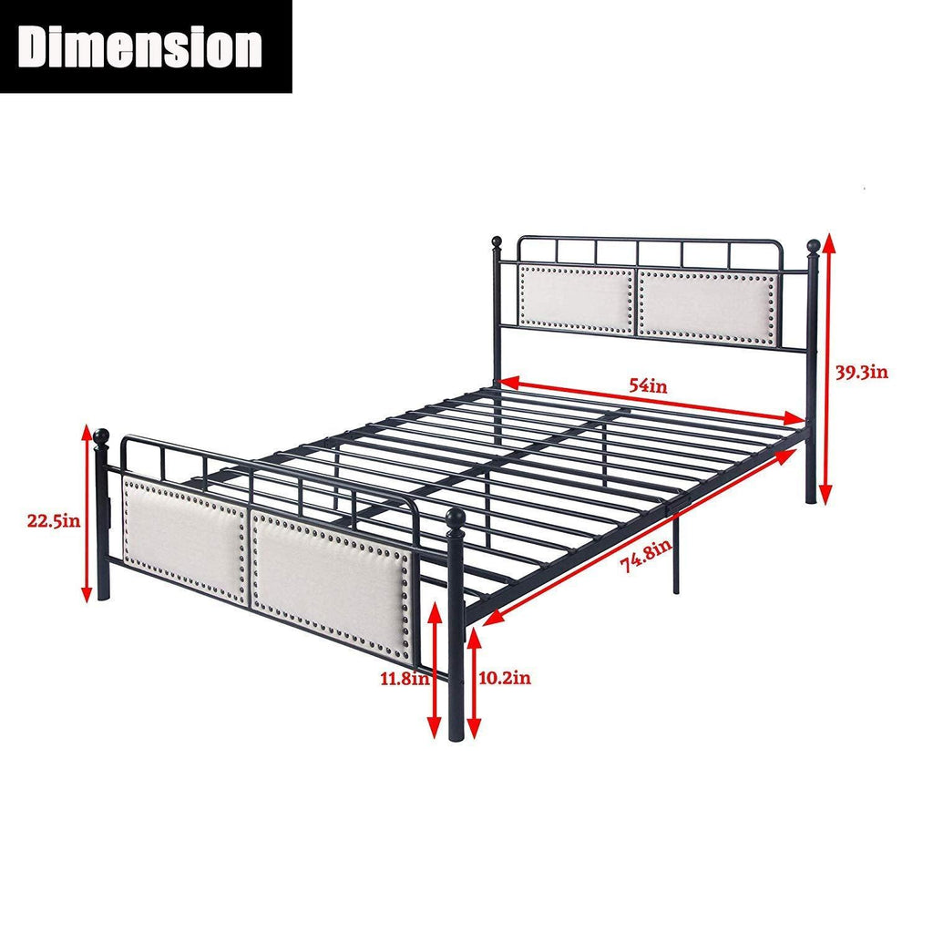 Full Size Bed Frame Dimension: 74.8"(L) x 54"(W) x 11.8"(H), no mattress come. No box spring is needed. Perfect for dormitory, kids children room.