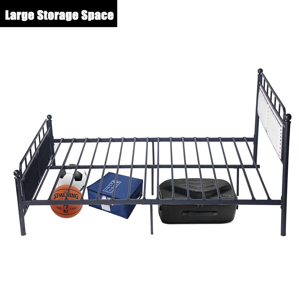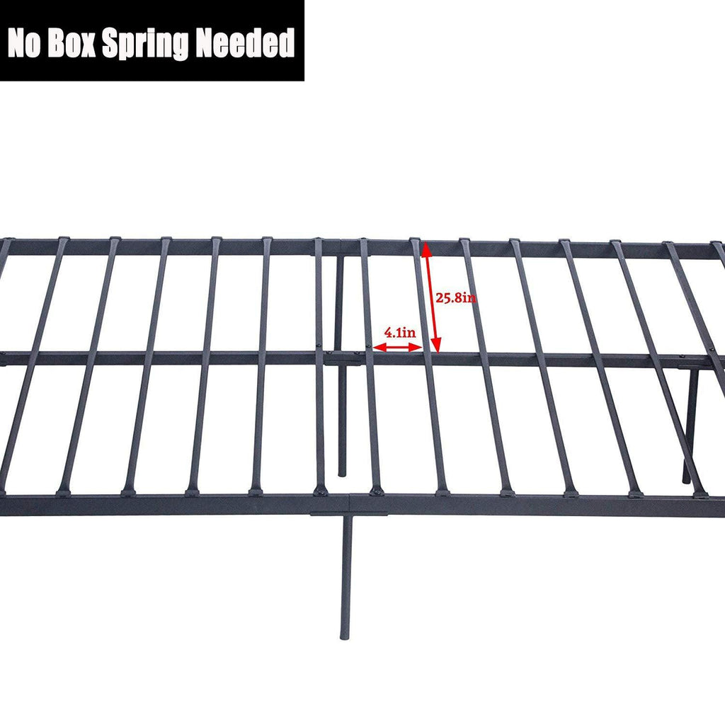 Sturdy Construction: 100% metal steel construction with 9 legs for more stability. Sturdy slats to support the mattress, prevent it from moving or sinking. Space between slats is 4 inches, weight capacity: 500 lbs.