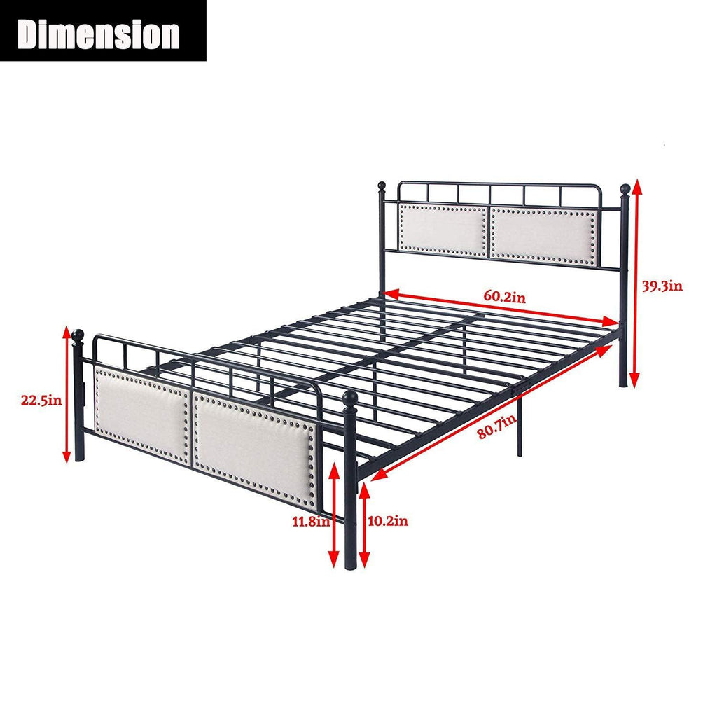 Contemporary design bed frame with upholstered headboard and footboard creates a sweet night sleep for you. Iron slat support provides structure and silence. 10.5 inch under-bed space offers sufficient place for storage.