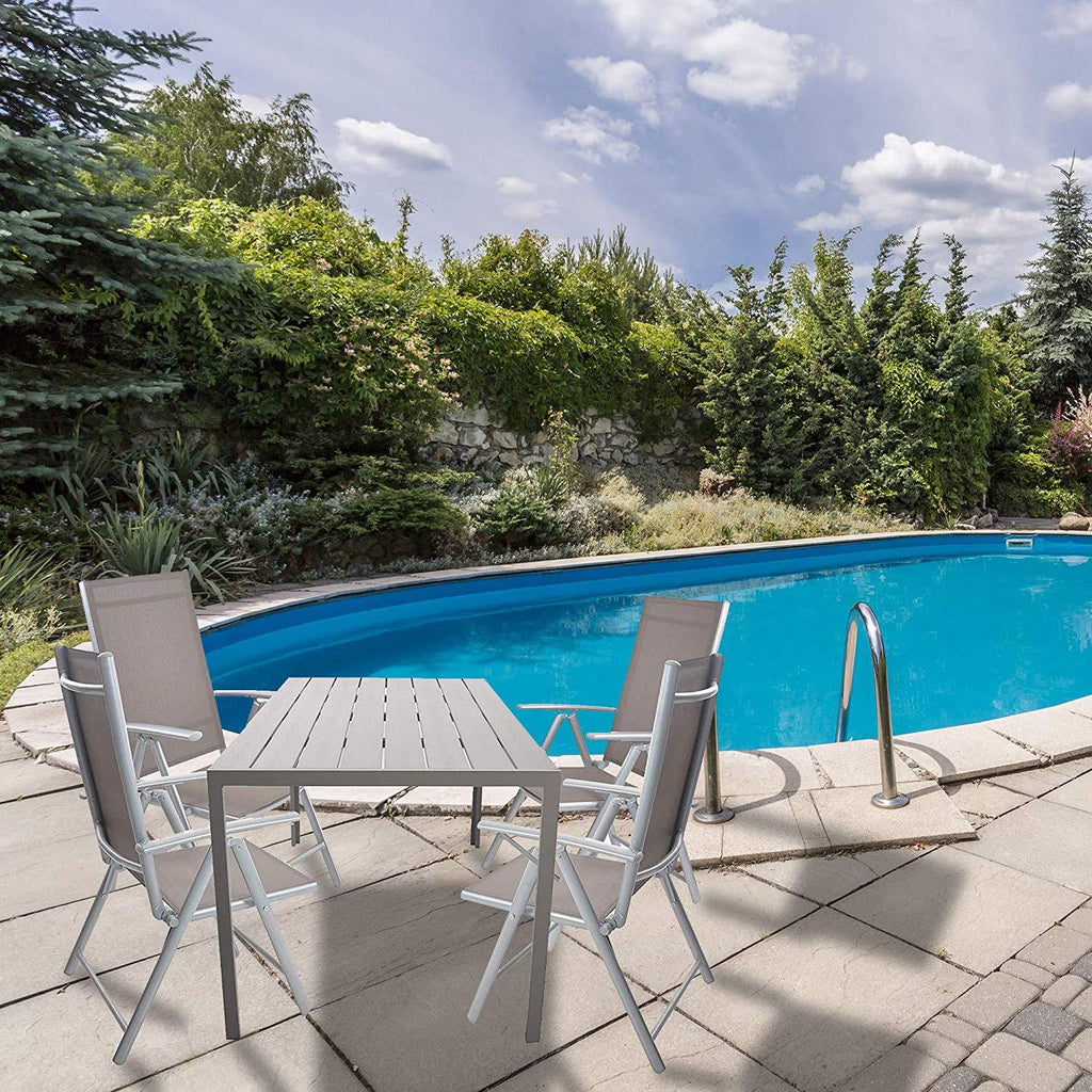 This patio table set come with 1 aluminum patio dining table and 4 folding outdoor dining chairs; it will be a great addition for any patio and backyard. Use it to host family lunches or use it as a serving table for any events!