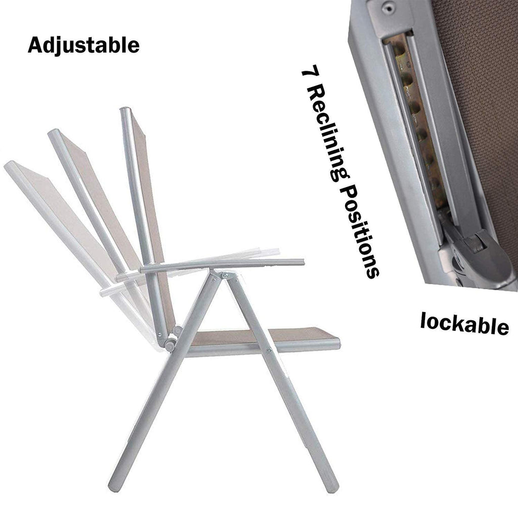 7 Levels Adjustable Chairs: The chair backrest can be adjusted and reclined from 100/106/112/118/124/130/136 degrees meet your various needs. The lock design ensure the safty and stable. you can choose your favorite degree lying on the chair and enjoy the food