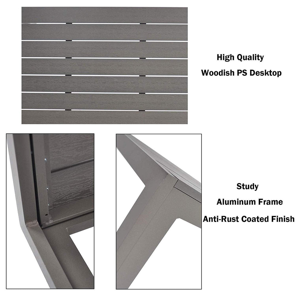 Sturdy and High Quality- Patio Dining Table made of high quality PS desktop and aluminum frame ,desktop can hold up to 330lbs; Patio folding chair made of durable aluminum frame and Breathable textilene fabric, Weight capacity up to 260lbs