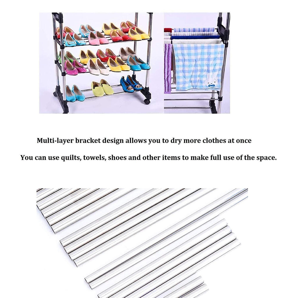 Our Bosonshop Portable Double Rod Extendable Clothes Rack is easy to use, saves space and makes the home tidier. The product is easy to assemble, does not require any tools, does not damage the floor, and has four wheels on the bottom that can be moved at will.