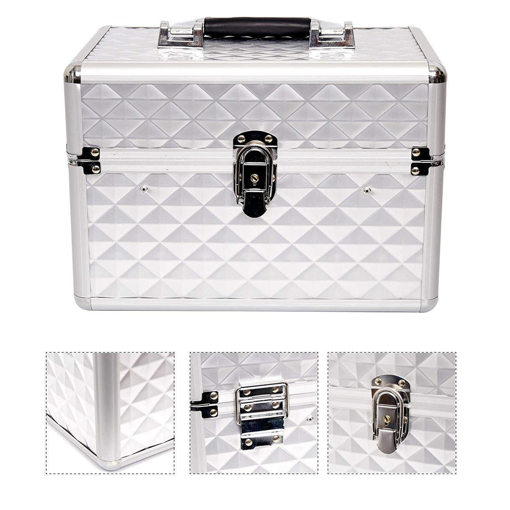 - Glossy silver finish decorated with ABS dazzling diamond lines and the matching aluminum framework make this train case suitable for both make-up lovers and professionals.