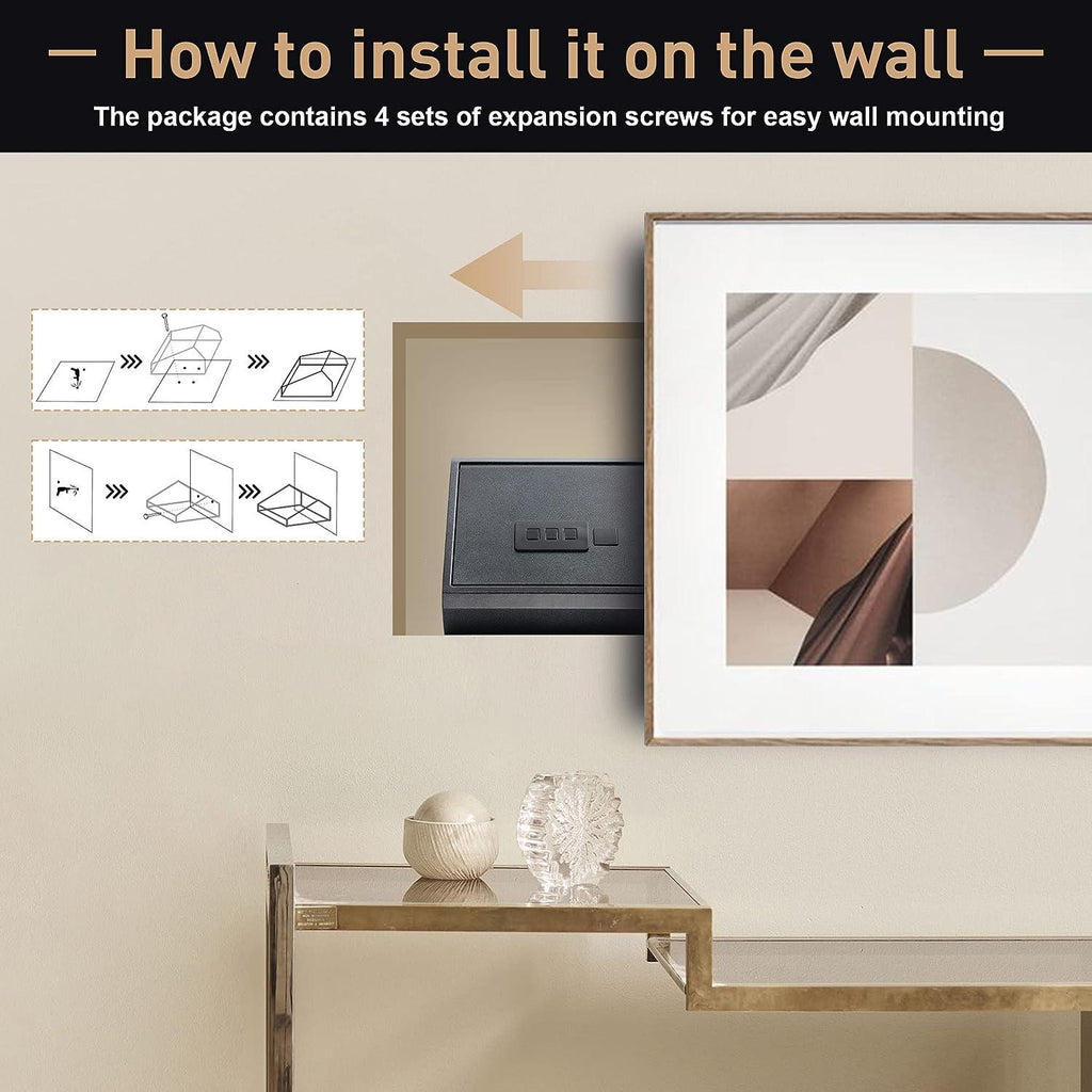 - 6 Pre-drilled holes at the base and back behind the safe box, can be bolted to walls floors or cabinets