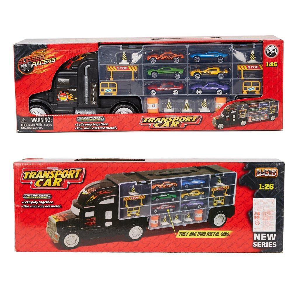 - The Transport Car Made of Strong Durable Plastic while the Toy Cars Are Die Cast Metal Cars.