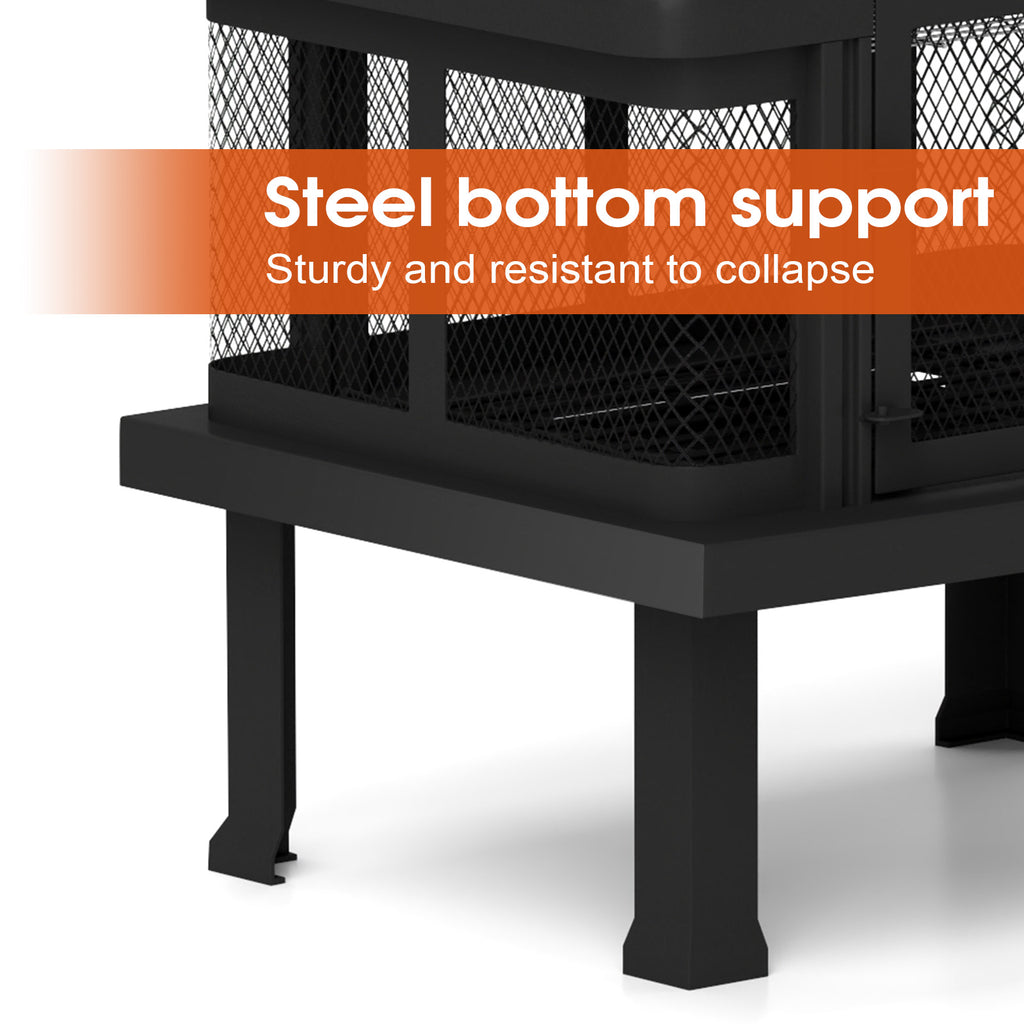 - The body is made of sturdy iron to ensure durability. The base and mesh cage are made of high-quality steel and heat-resistant paint.