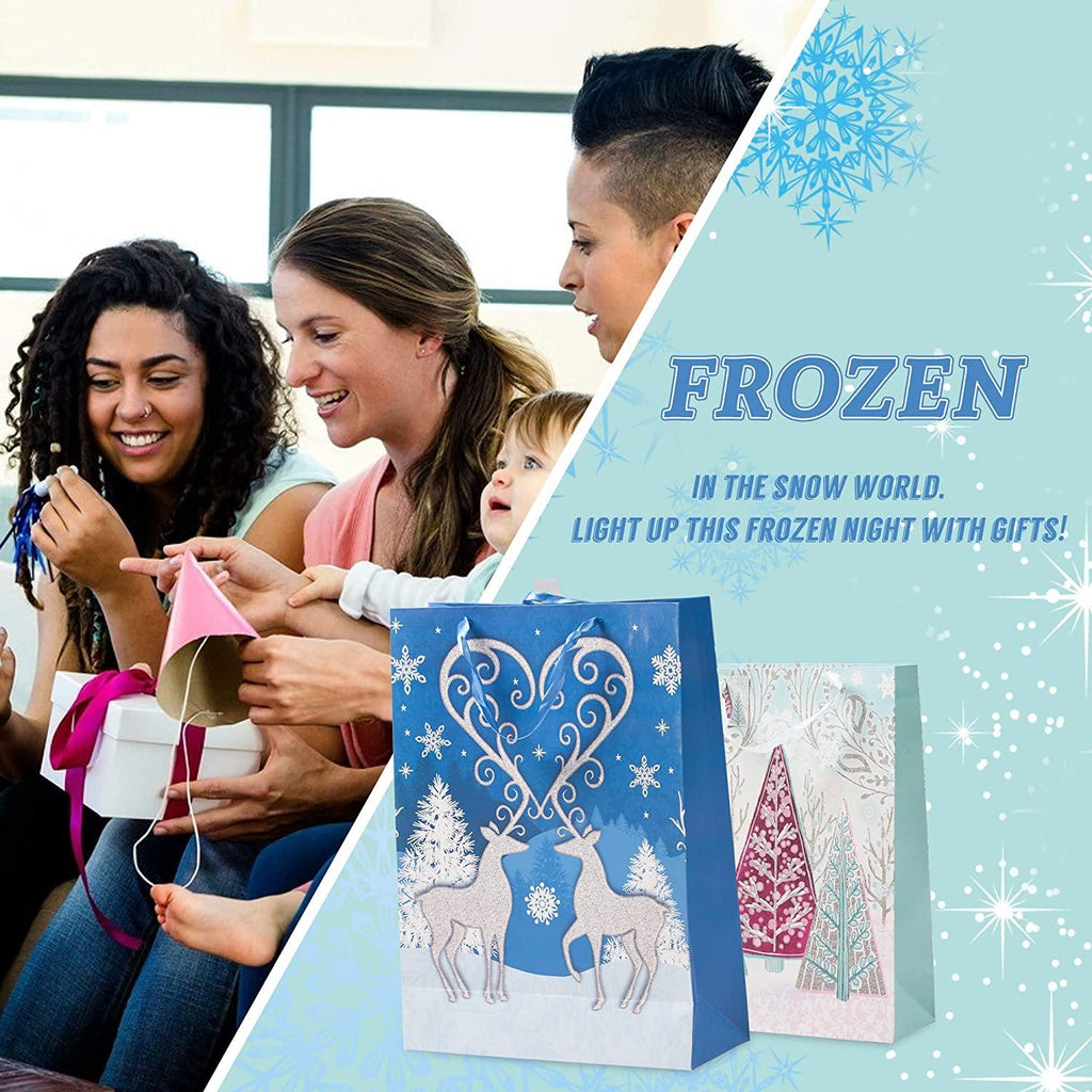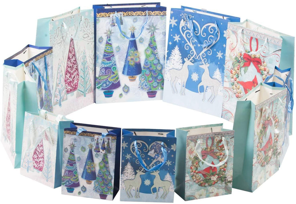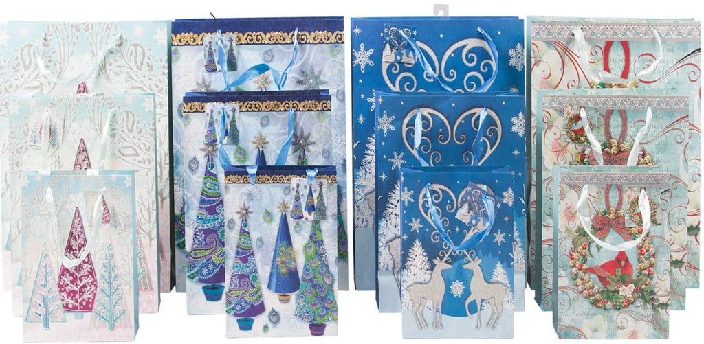 - 【12 Count】4 Patterns of each size of gift bag and 3 sizes can meet your gifts' size. Such as small exquisite jewelry, fluffy scarf, and clothing, or toy boxes for kids.