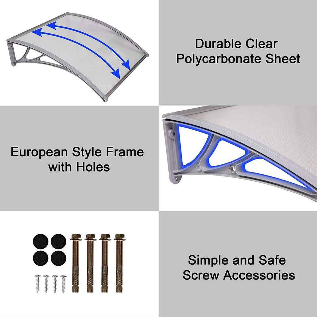 Great Modern Design: Following the simple European design, stylish arcs and gray colors, this canopy can bring better visual effects to the house. Practical transparent structure will not block the sunlight, but also prevent raindrops from falling on your head.