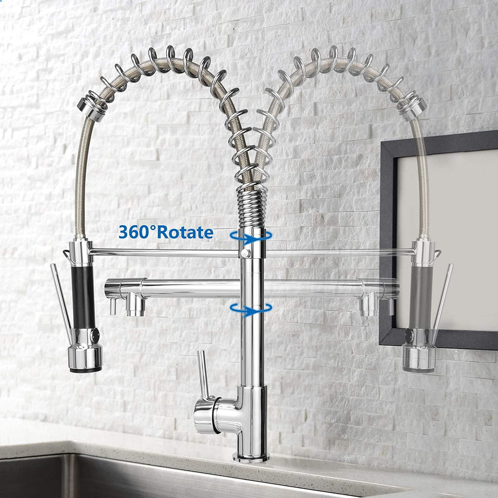 - The handle can be mounted on the left hand side or either direction because the faucet can rotate 360 degrees. High arc 360 degree swivel spout supply full range washing access.