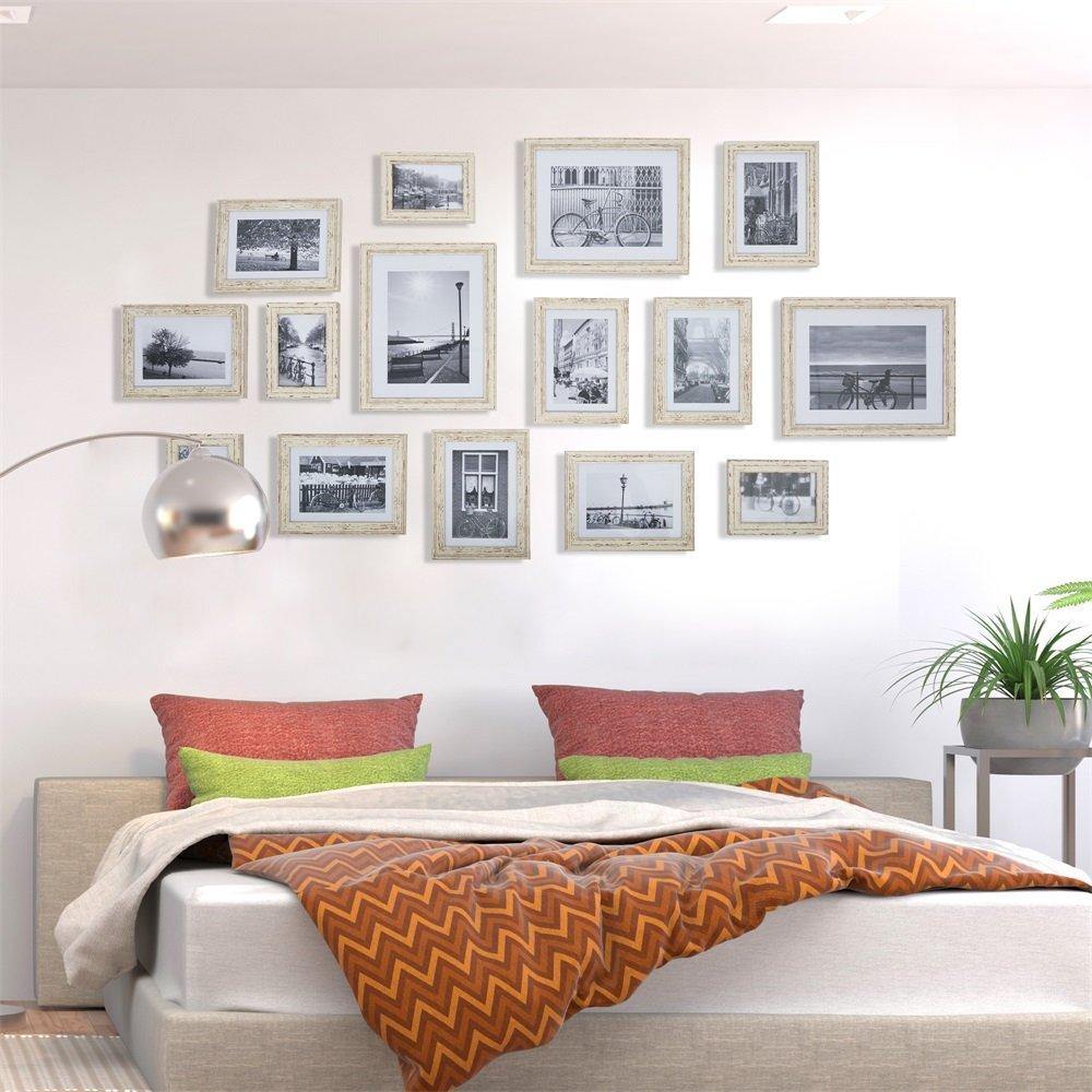 - 15 pcs photo frame value set includes 3 pcs 8x10 in, 8 pcs 5x7 in, 4 pcs 3.5x5 in with a set of decorative art print