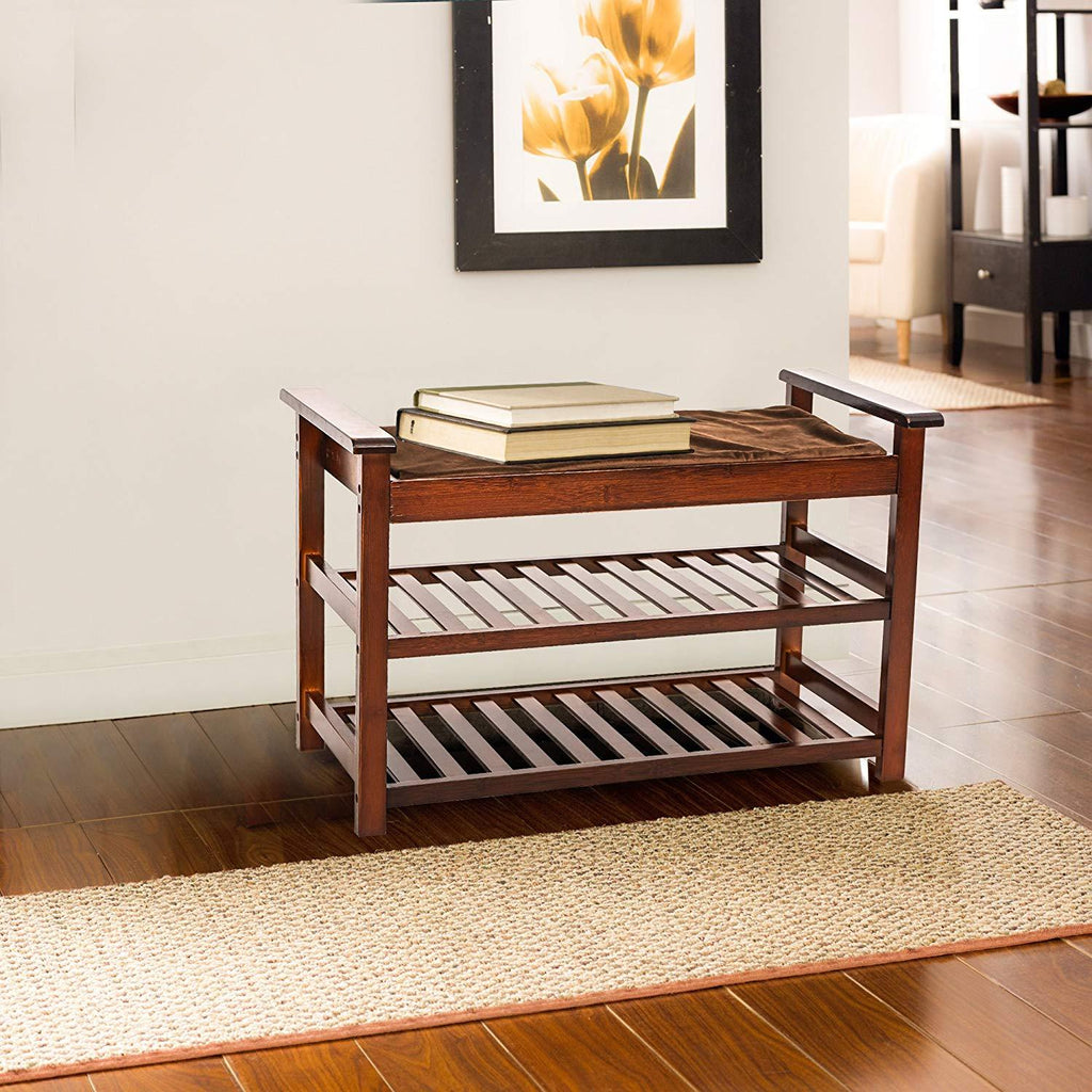A combination of shoe rack and bench to help you saving space; Foam padding comfortable to sit on; Use the 2 tiers bamboo rack as a plant stand, a spa bench, a bed bench or any other storage rack to be placed in the hallway, doorway, garage, mud room, living room, bedroom, balcony, bathroom, etc. If you are looking for such a product, don't hesitate to place an order!