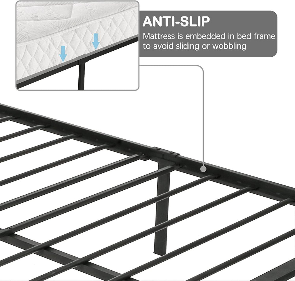 Sturdy Bed Frame: 800 lbs weight capacity. Durable and noise free construction with solid metal side rails and multiple support legs for stability and durability. 14 iron slats offers great mattress support