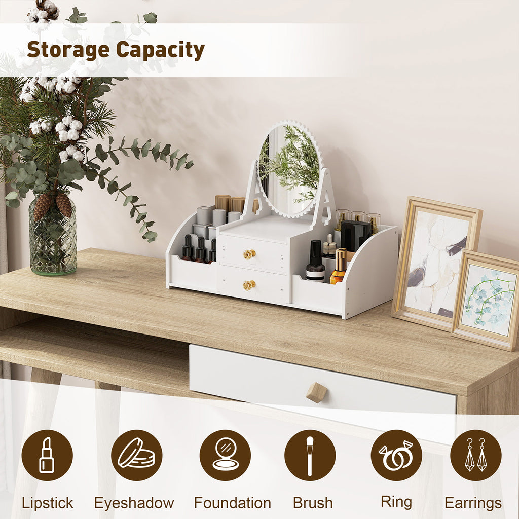 Equipped with a spacious storage box at the bottom, it offers you the perfect place to keep your essential cosmetics neatly organized. No more wasting time searching for your favorite lipstick or brush - everything you need is conveniently at your fingertips.