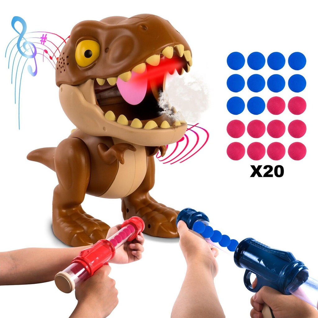 This dinosaur shooting toy includes a target dinosaur, 1 water ejector, 20 foam balls and 2 air guns, suitable for children's daily play and game competition, but also the best choice for children and parents.