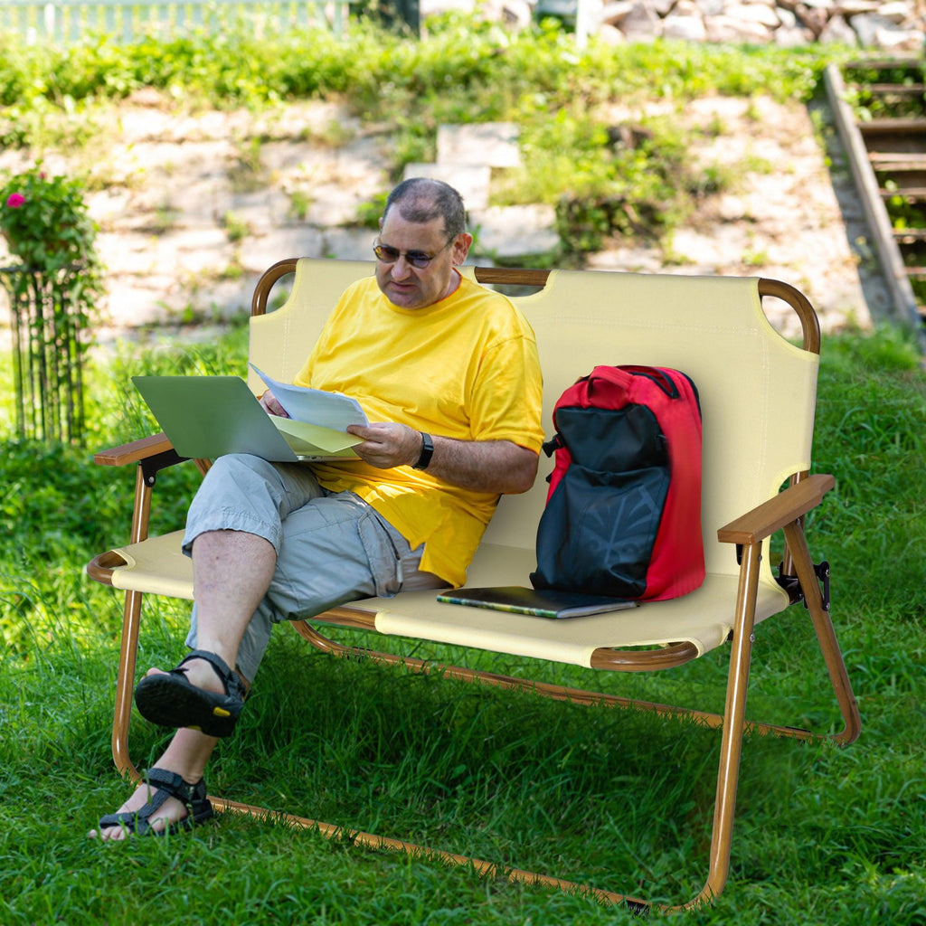- This lightweight outdoor camping double chair can be quickly folded and unfolded, which greatly facilitates you to take it outdoors for camping, fishing, and other activities. You can also easily put it in your suitcase and Carry it to the field for use, in addition, it will not take up too much space to fold it up for storage.