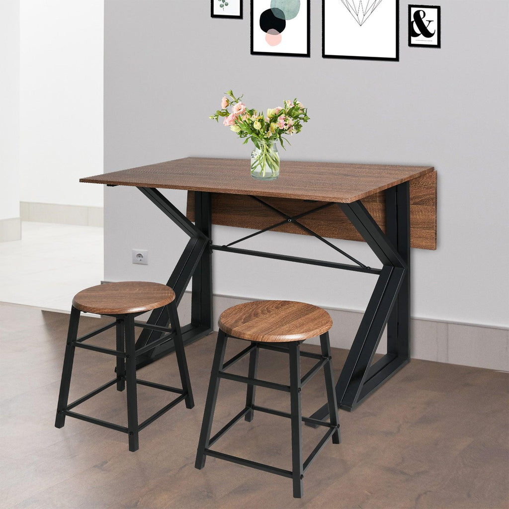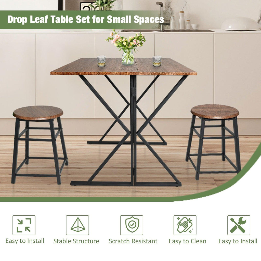 - This drop leaf table set is perfect for small spaces, with its compact design allowing you to easily fold the table and tuck it away when not in use.
