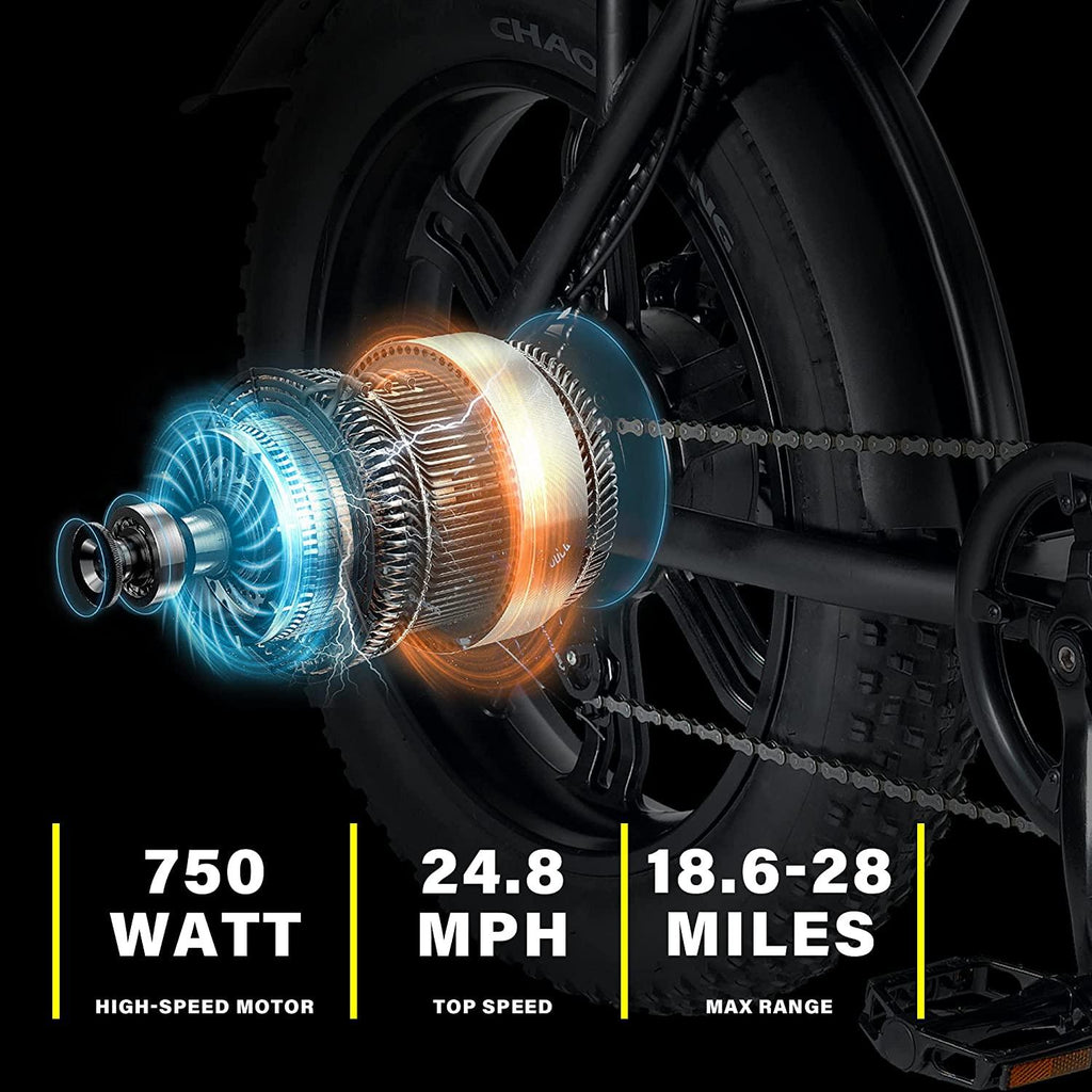 Lithium Battery & Powerful Motor: This electric bike equips a 750W rear-drive motor to help you uphill 15-30 degree, top speed up to 24.8 MPH. With a 48V 15Ah IP54 waterproof removable lithium battery and fully charged in 7 hours, this ebike is capable to achieve 18.6-28 miles.