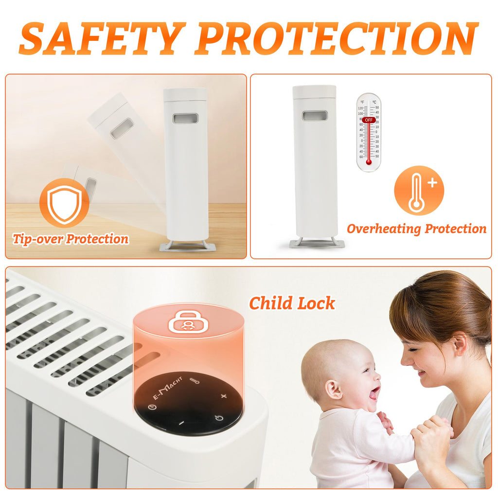 Safety First: Equipped with safety features such as overheat protection and a tip-over switch, you can enjoy peace of mind knowing your space is heated safely.