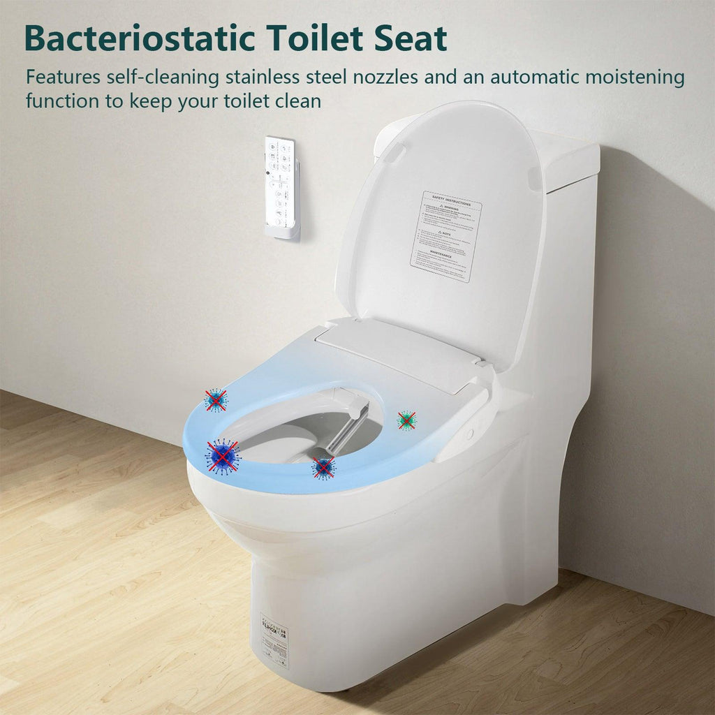 If it is not convenient for you to replace the toilet directly, but you want to experience the experience brought by a smart toilet. Then our Electric Bidet Seat with Wireless Remote Control is your best choice. With a slim, low-profile design that fits most elongated toilets. A built-in side panel is ergonomically designed for easy control of water temperature and spray, while the heated seat keeps you comfortable. A built-in night light illuminates the bowl, and the self-cleaning stainless steel wand uses UV light for automatic sanitizing.