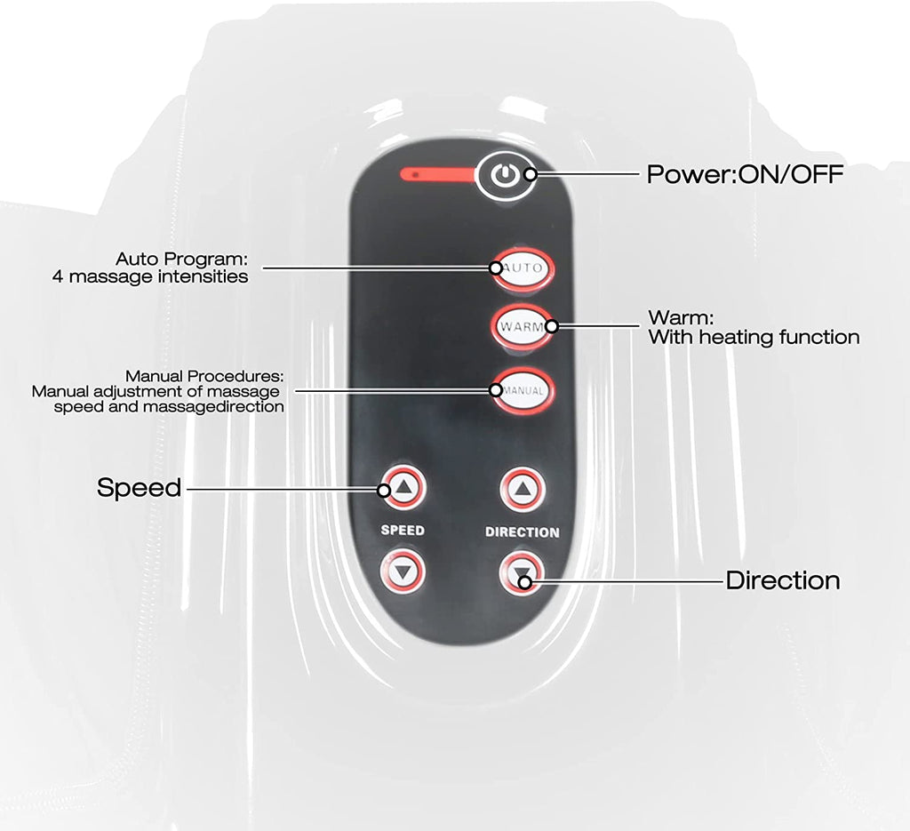 Convenient;Hygienic: The foot massager machine equipped with remote control, which will be more suitable for the habits of the elderly, without the need to bend over and effort. Removable washable cloth in the foot chambers helps keep a clean and healthy environment.