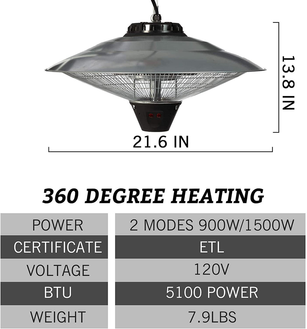 This Electric Patio Heater is suitable for outdoor and indoor, such as parlor, bedroom, garden, balcony, bar, office, dining room, camping and so on.