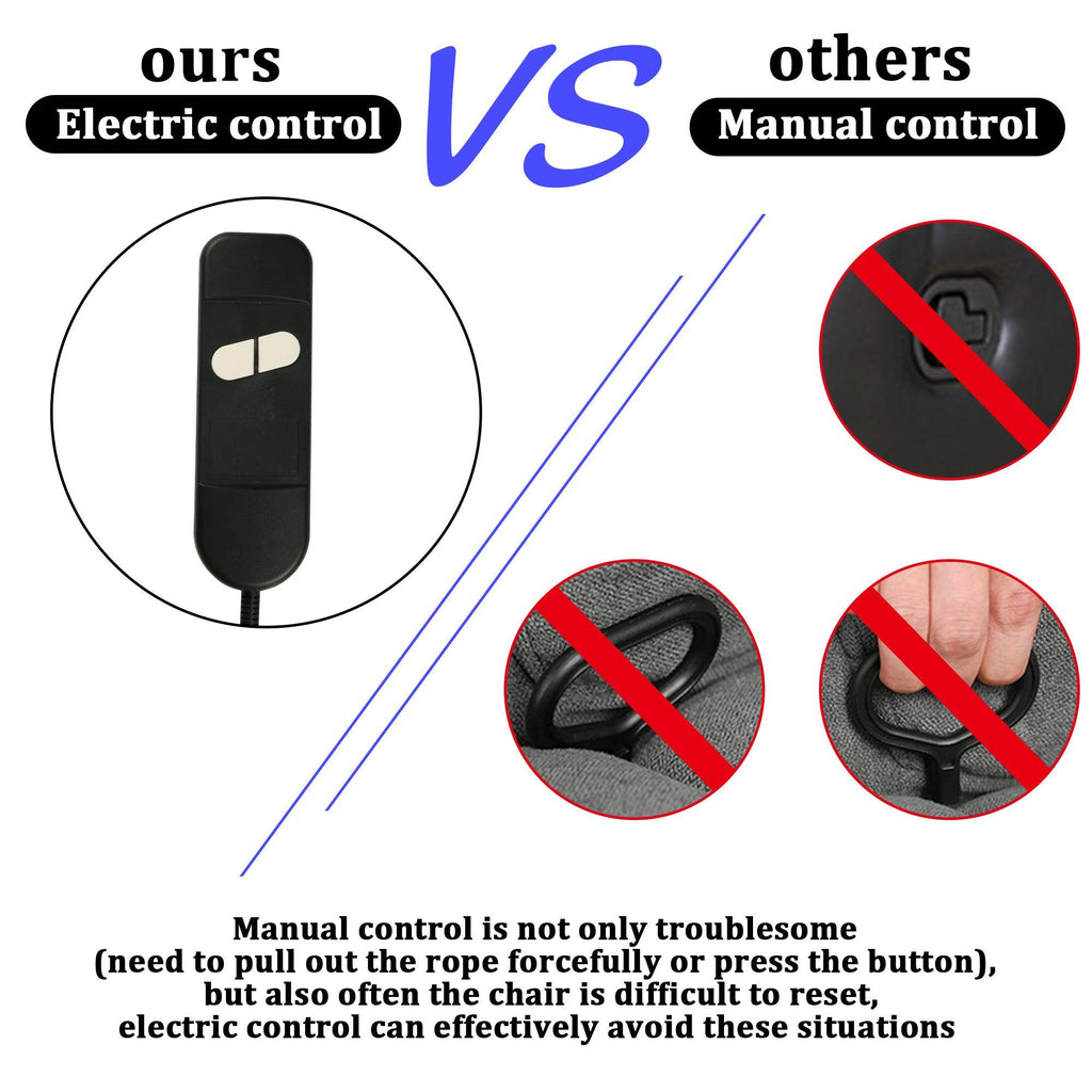 - This adjustable lift electric recliner chair comes with 4 areas of massage (shin, thigh, lumbar, head) and 5 modes (pulse, press, wave, auto, normal), meeting all your demands for different massages.