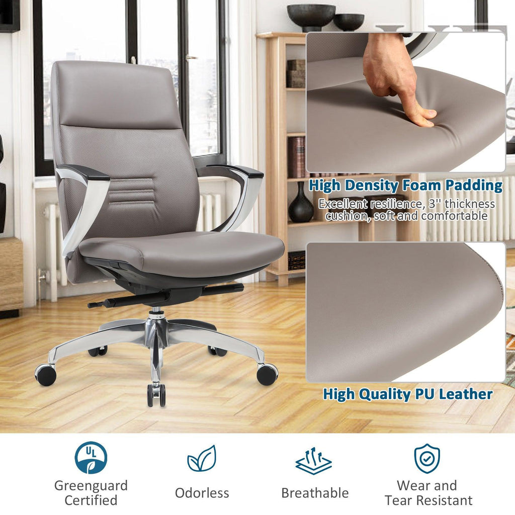 Quality material: This computer chair is made of high-quality PU leather, GREENGUARD certification, zero formaldehyde, zero odor, super breathability, and has a comfortable leather feel. The 3inches thick cushion is filled with a high density fireproof sponge, making it extremely resilient, soft and comfortable for sedentary office workers.
