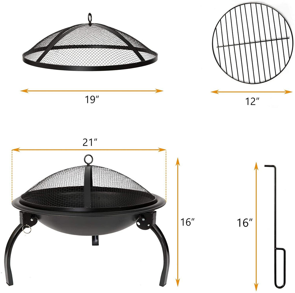 Multifunctional Fire Pit: This fire pit can be used for heating,grilling and toasting marshmallows/hot dogs.While bringing warmth, it can also provide light at cold night.