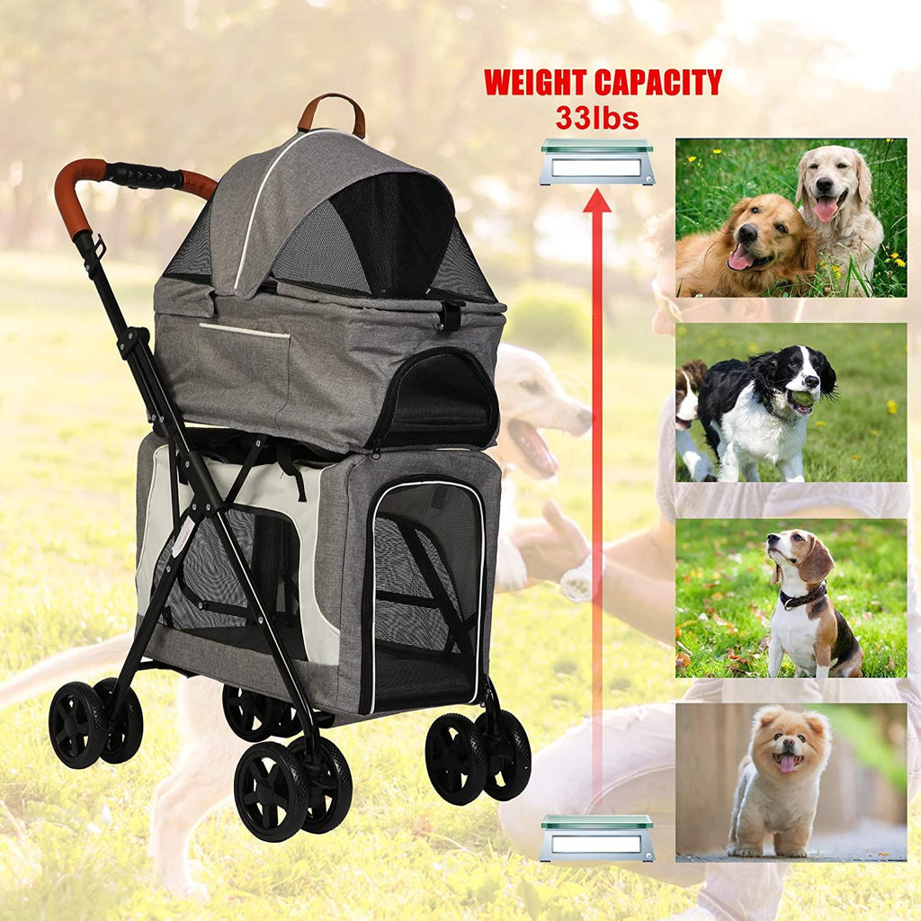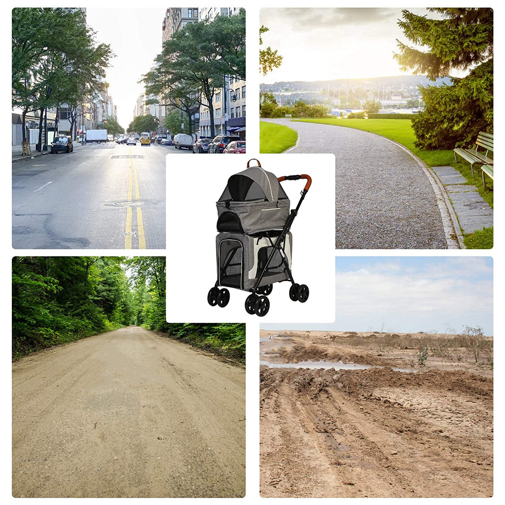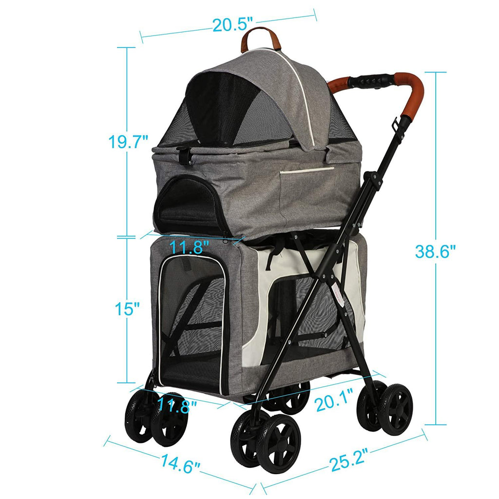 Safe & Comfortable: The rear brakes and safety tether help keep your furry pals safe and the included pad on the inside of the cart offers added comfort. The double-deck pet bus also comes with 2 upper and 2 lower safety leashes.