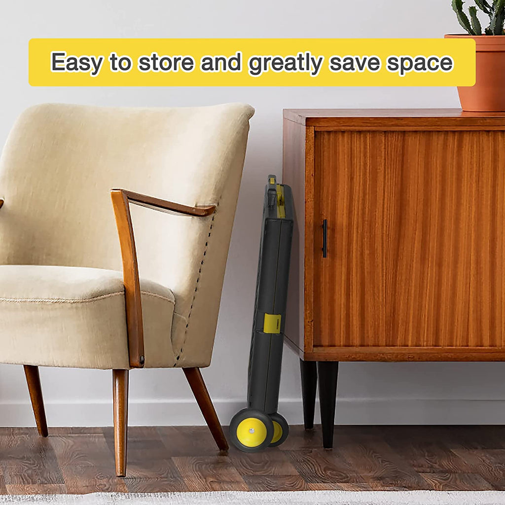 The updated folding rolling cart provide extra capacity, ideal for laundry, groceries, sports, school, office and much more. Durable PP material can support up to 55lb, can help to carry something heavy. Wheels made of high quality with shock absorption,you can easily push the crate on the floor. Anyway, this sturdy folding utility cart is ideal for anyone on the go.