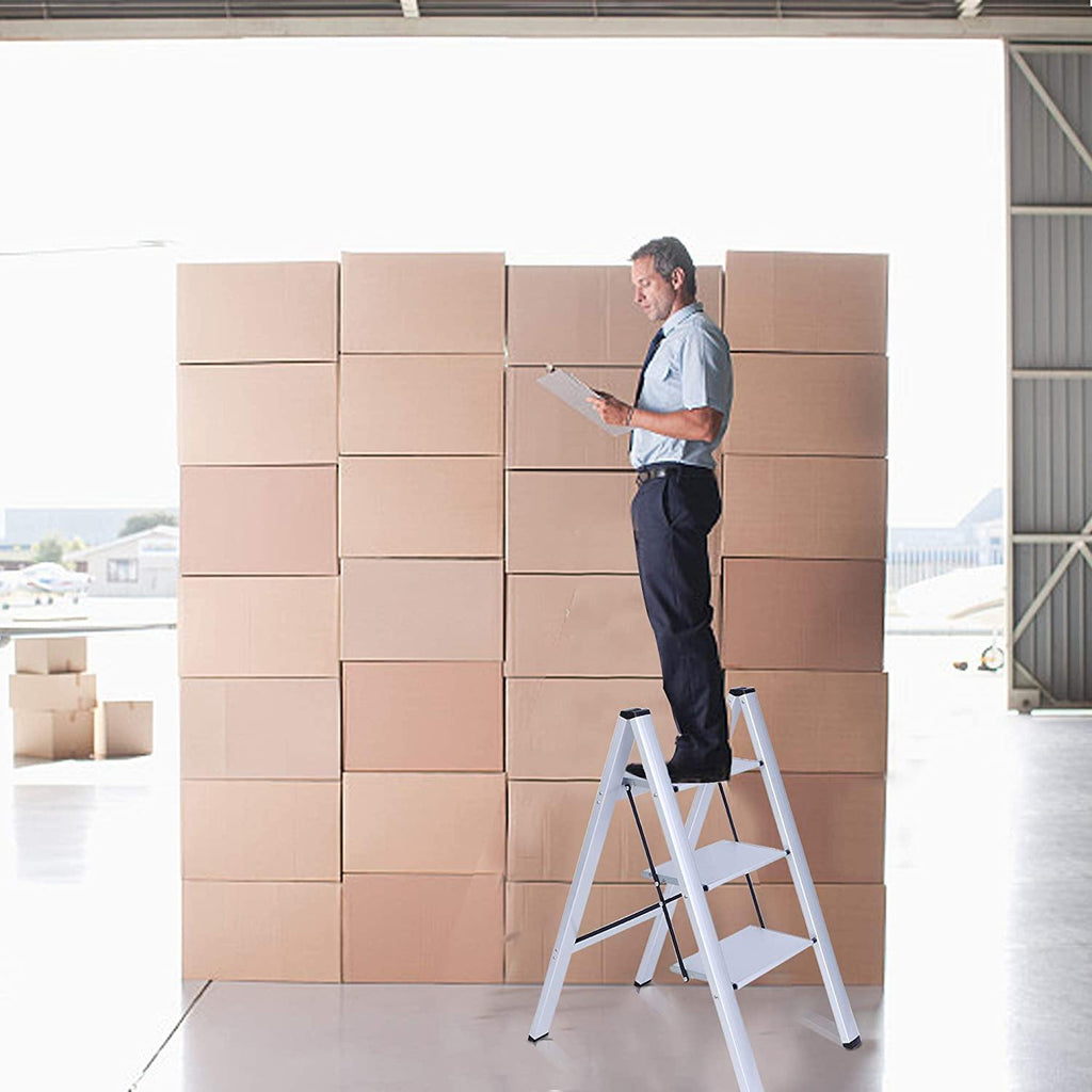 The 3 step ladder has anti-slip pedals and feet tips, avoiding slipping when you climb.
