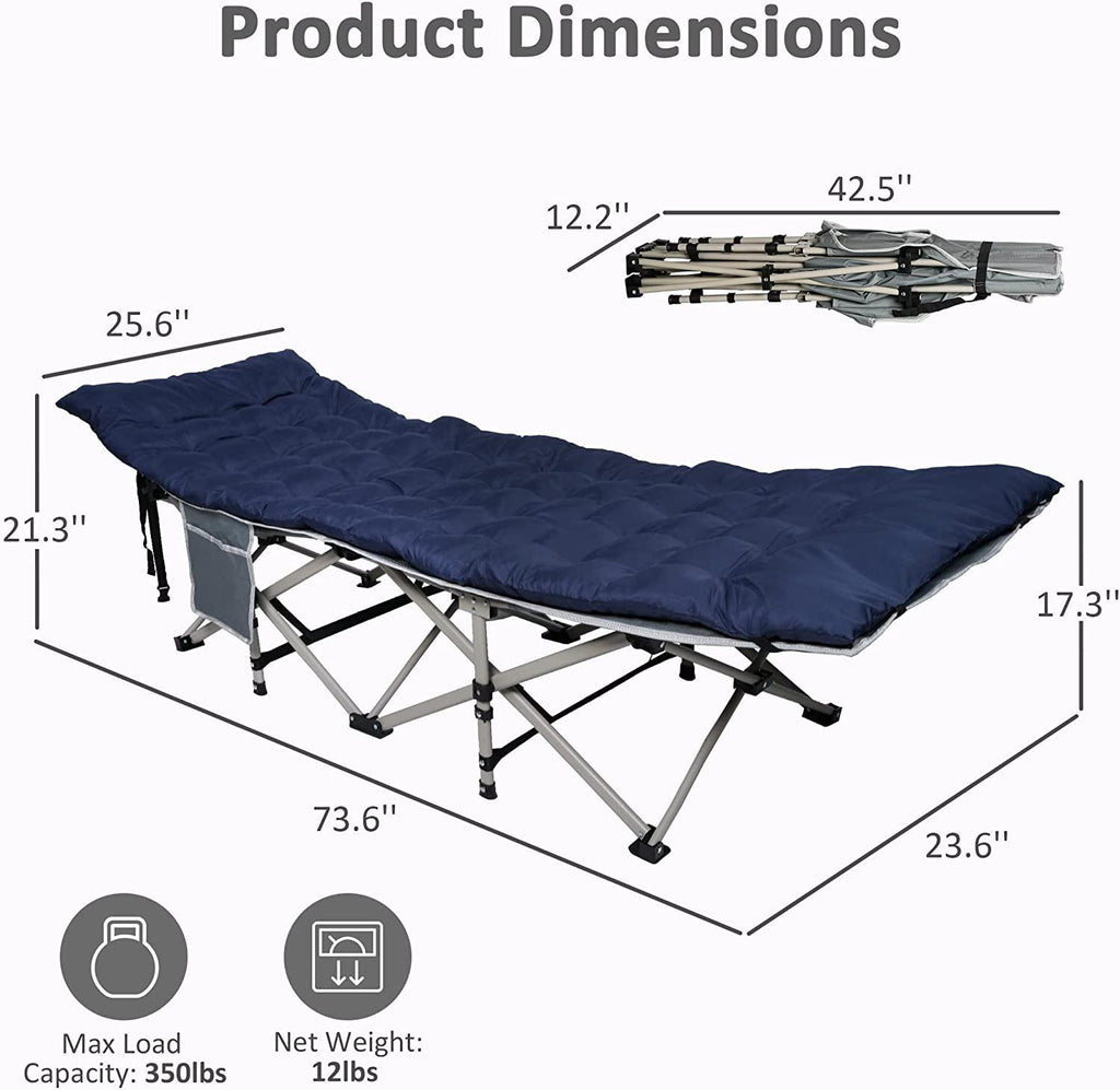 Durable and Sturdy Structure: The folding camping cot is with a powder-coated steel frame, which is not easy to rust, peel, or chip, ensuring long-lasting durability. 10 non-slip support feet at the bottom ensure a safe and stable sleeping surface, ensuring great stability and a large loading capacity of 350 lbs.