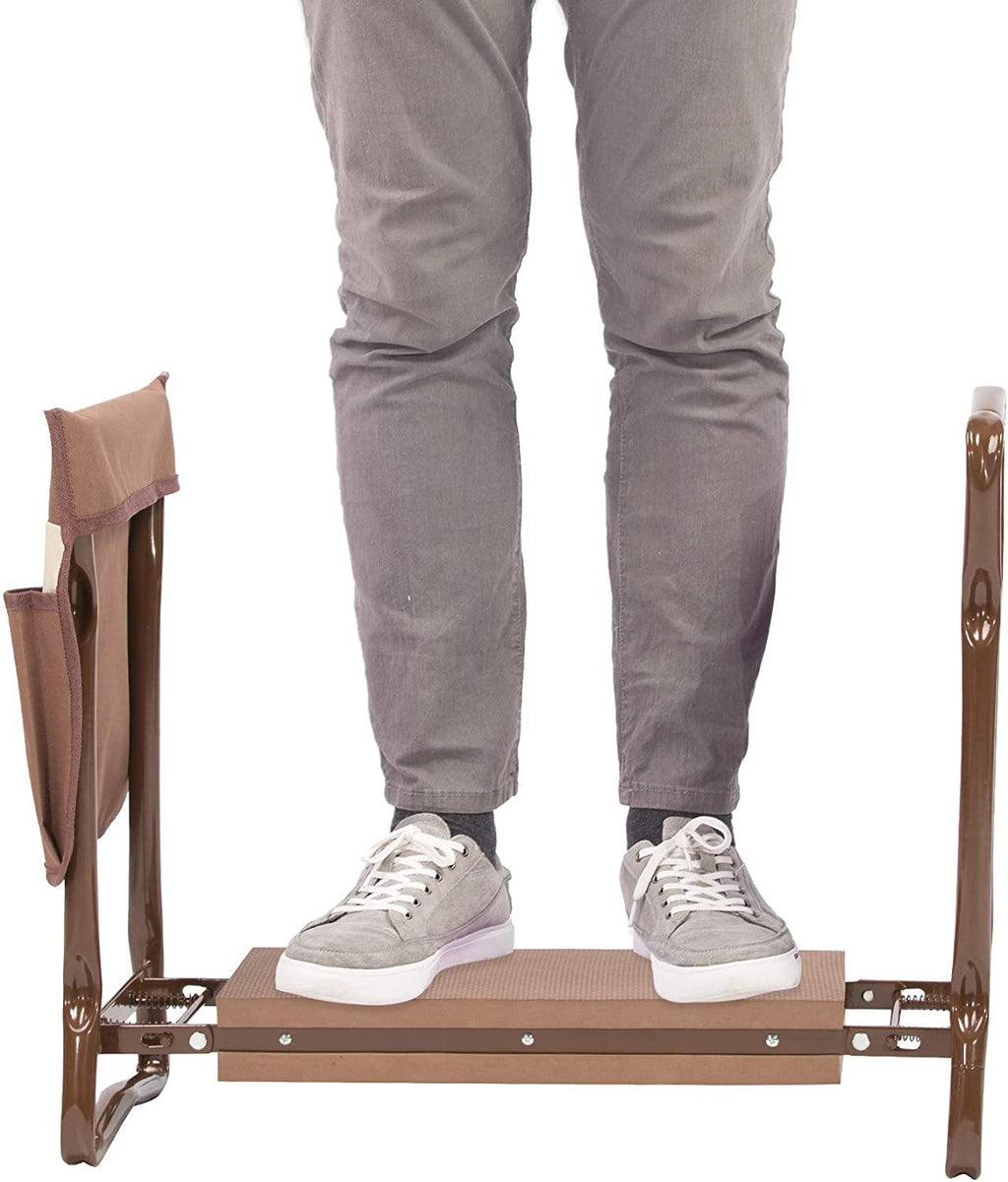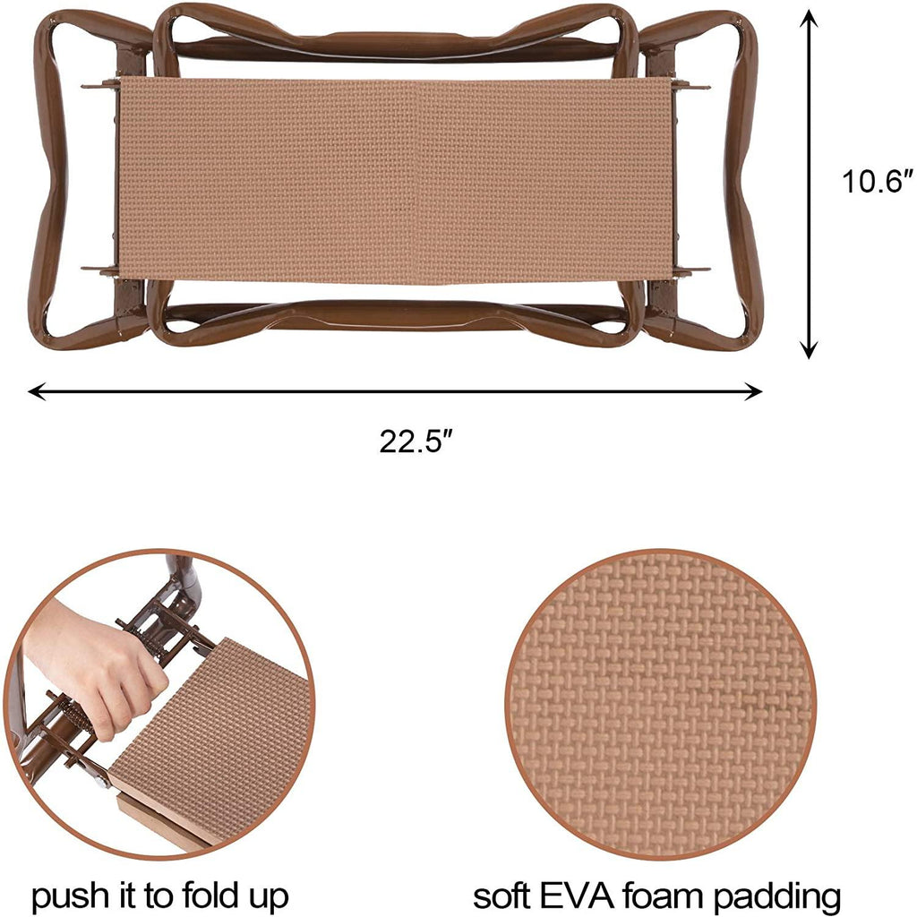 Protable Garden Tool: The garden kneeler folds up easily and compactly, easy to carry and storage; Folded Dimensions: 22.5" (L) x 10.6" (W) x 5" (H). Weight: 5.7lbs