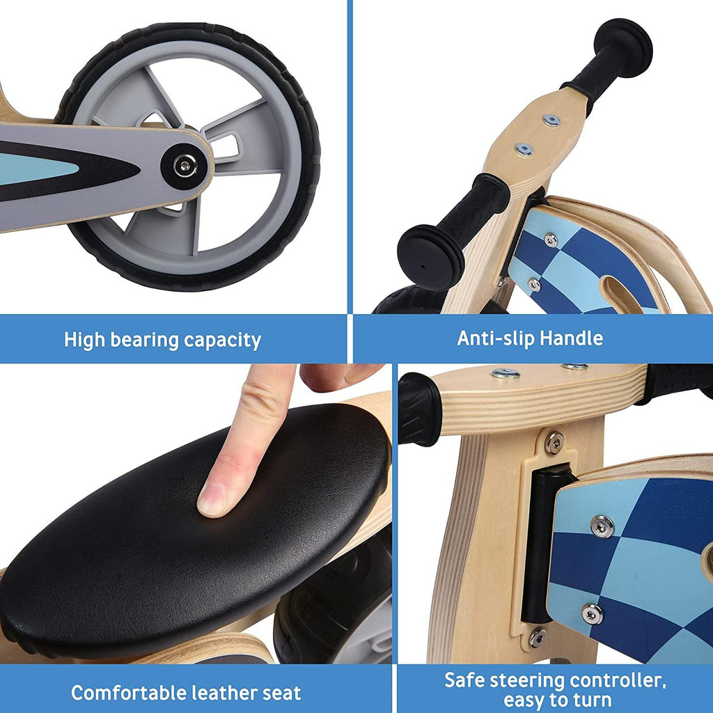 - The balance bike made of friendly planted wood and 100% wood non-toxic paint. The size is perfect for young children's hands.