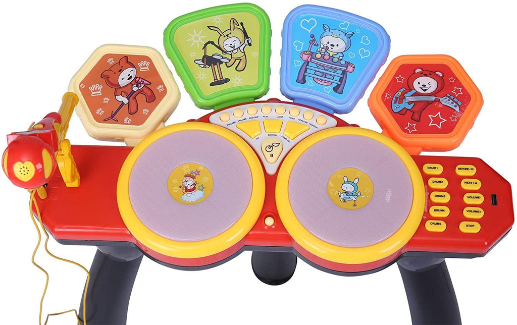 - Included -- 6 Drum Heads + Microphone + Real Working Lights + Applause Button + Hurrah Button + Demo Song.