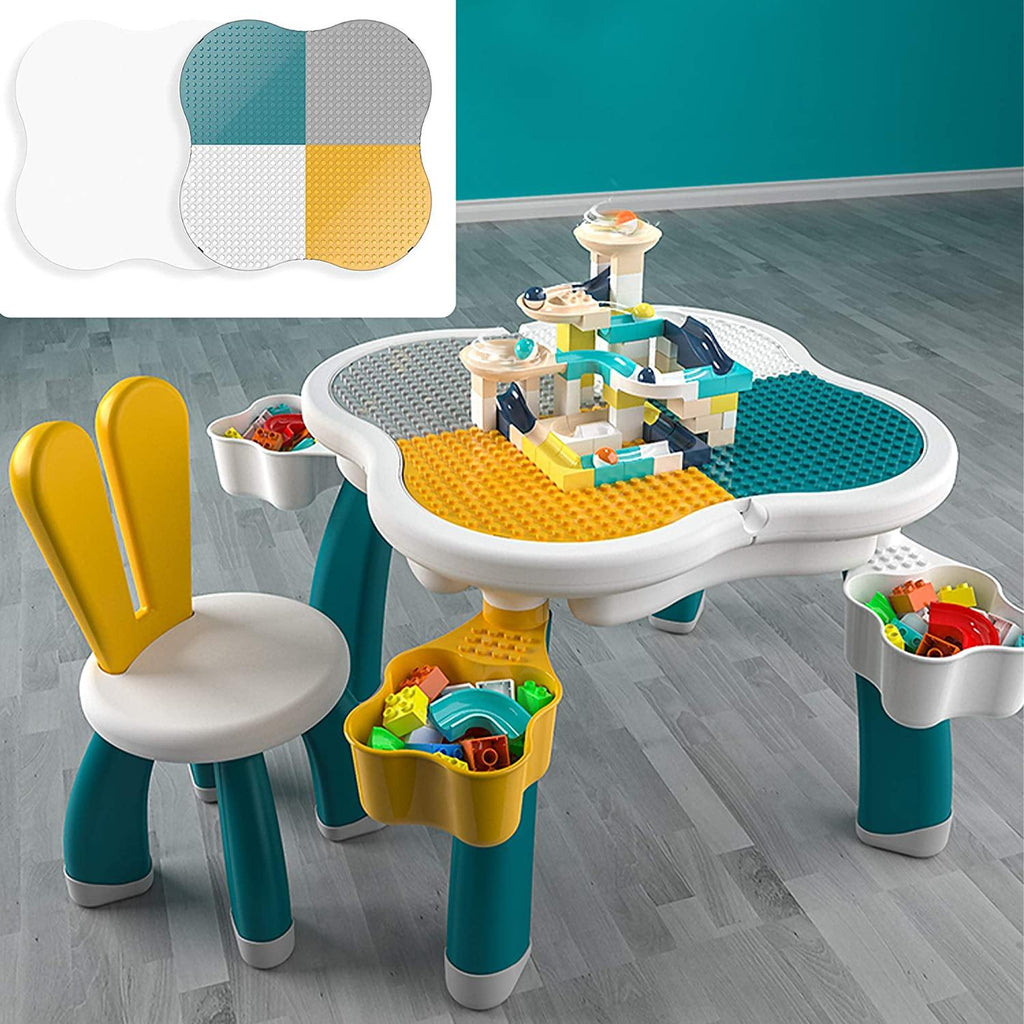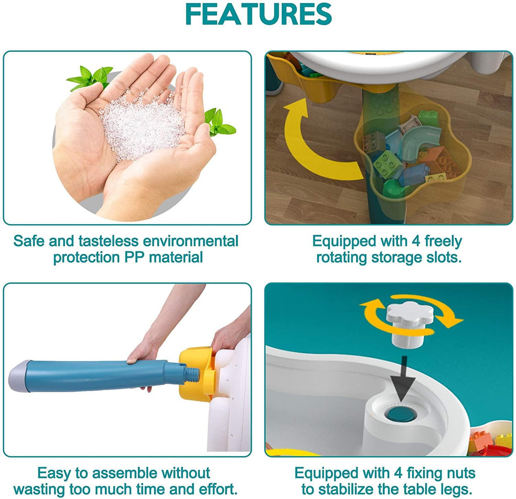 Multi-function Use -- Double-sided desktop design, it can be used as a Building Block Table + Learning Table + Dining Table + Water Table + Sand Table + Storage Table and so on. Such a multifunctional table is a good choice for kids over 3 years old.