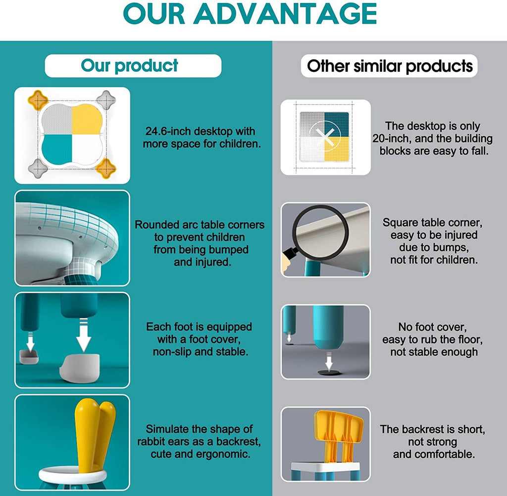 Safe and Durable -- Made of non-toxic, tasteless, and environmentally friendly PP material, keep safe for kids' use. The thick material is more stable, sturdy, and durable than other activity tables on the market. Good Choice for it.