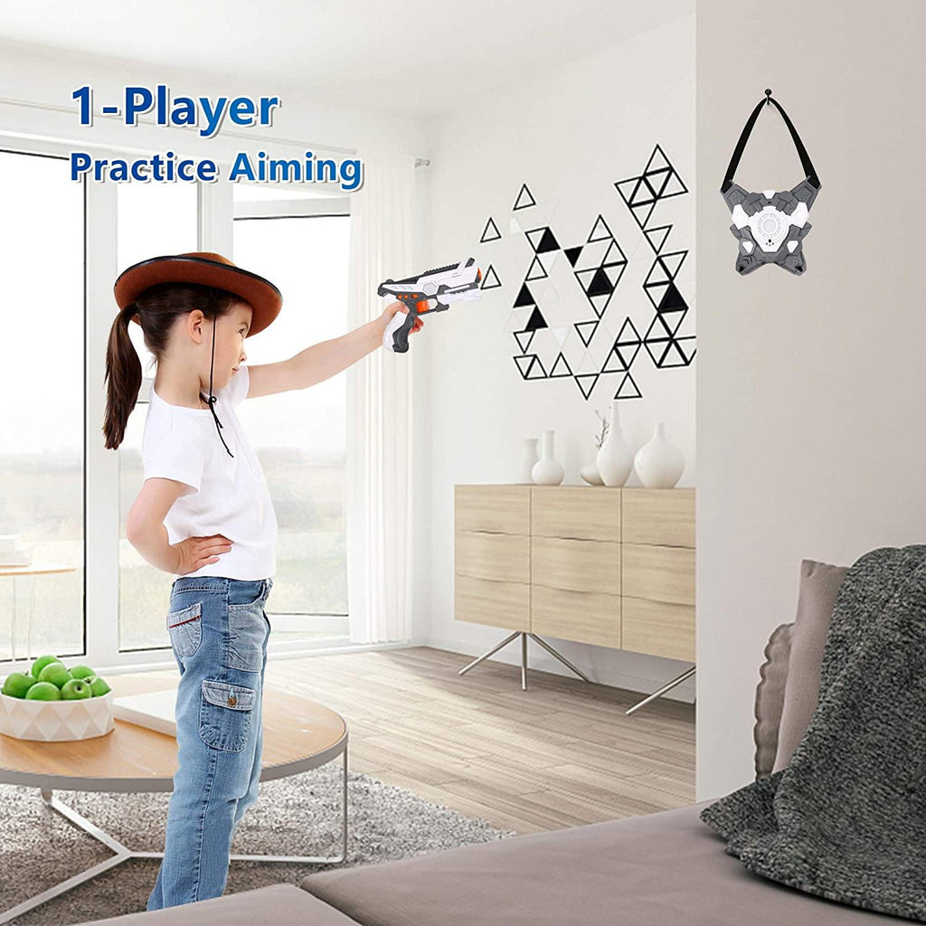 - We provide two guns and two vests, suitable for more than two players. Also, you can purchase more sets to increase your number of players.