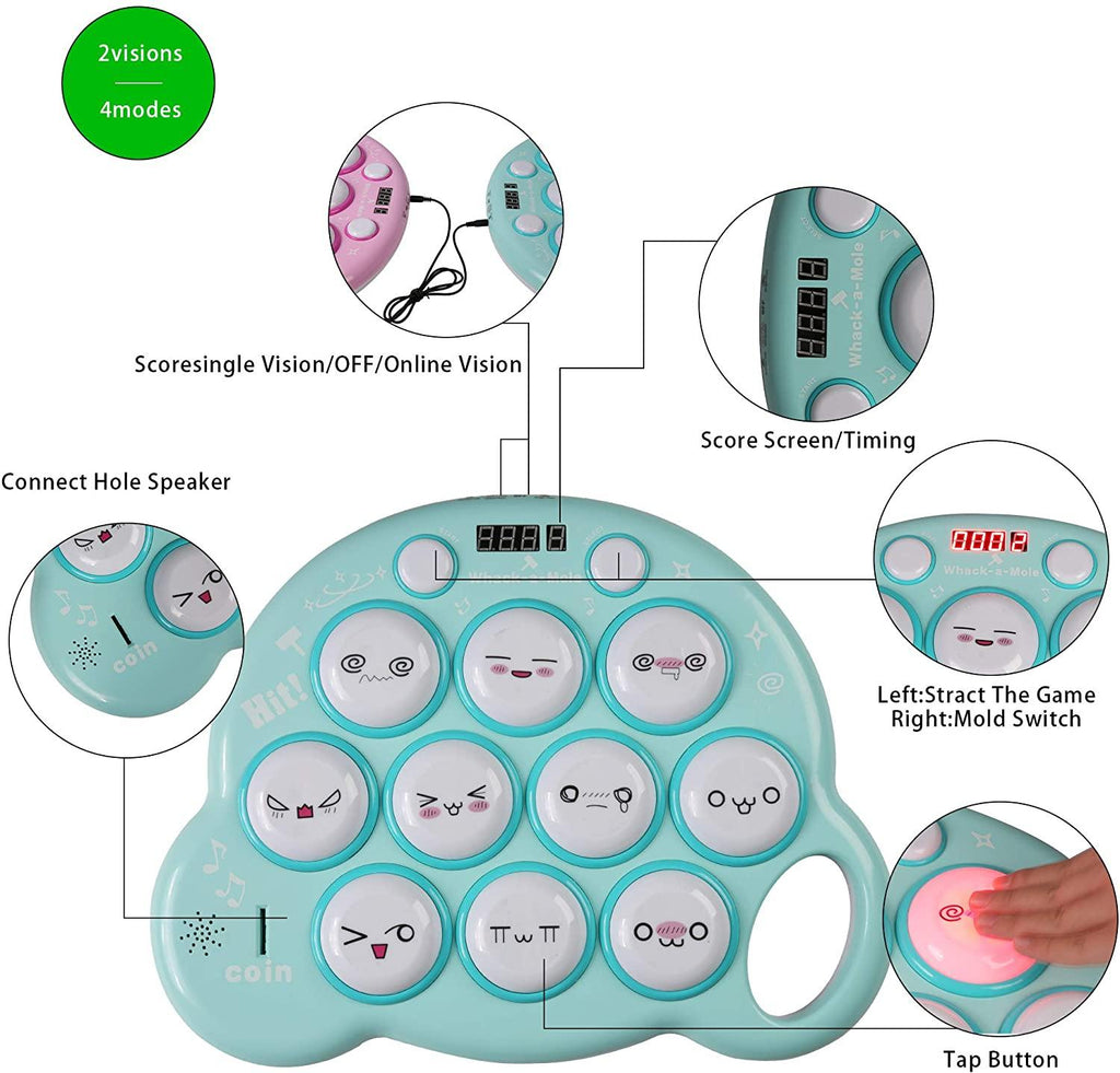 Multiple game modes: The interactive mole game have single vision and online vision. This is what makes us different from traditional toys. The memory mold is set as 10 levels, and the difficulty gradually increases as you progress.