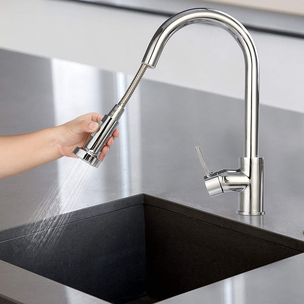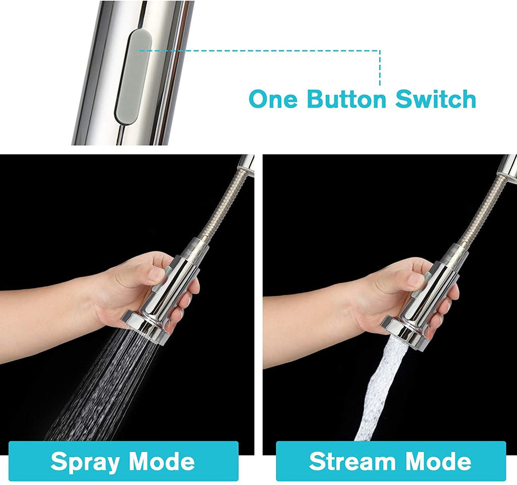 - Easy To Use - One button switches two setting modes (Spray/Stream), single-handle control water temperature and flow volume easily, the pull-out faucet allows you to handle all types of tasks.