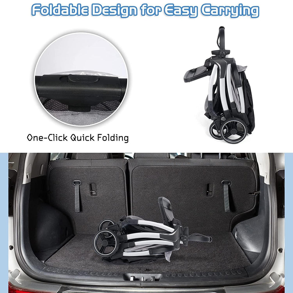 Perfect for Travel: This baby stroller features one-hand quick folding to transform it into a compact size whether you decide to put it in the luggage compartment of an airplane or the trunk of a car. Besides, the lightweight structure (13.7 lbs) and retractable T-shaped rod make travelling more effortless. And the self-standing design is convenient for storage.