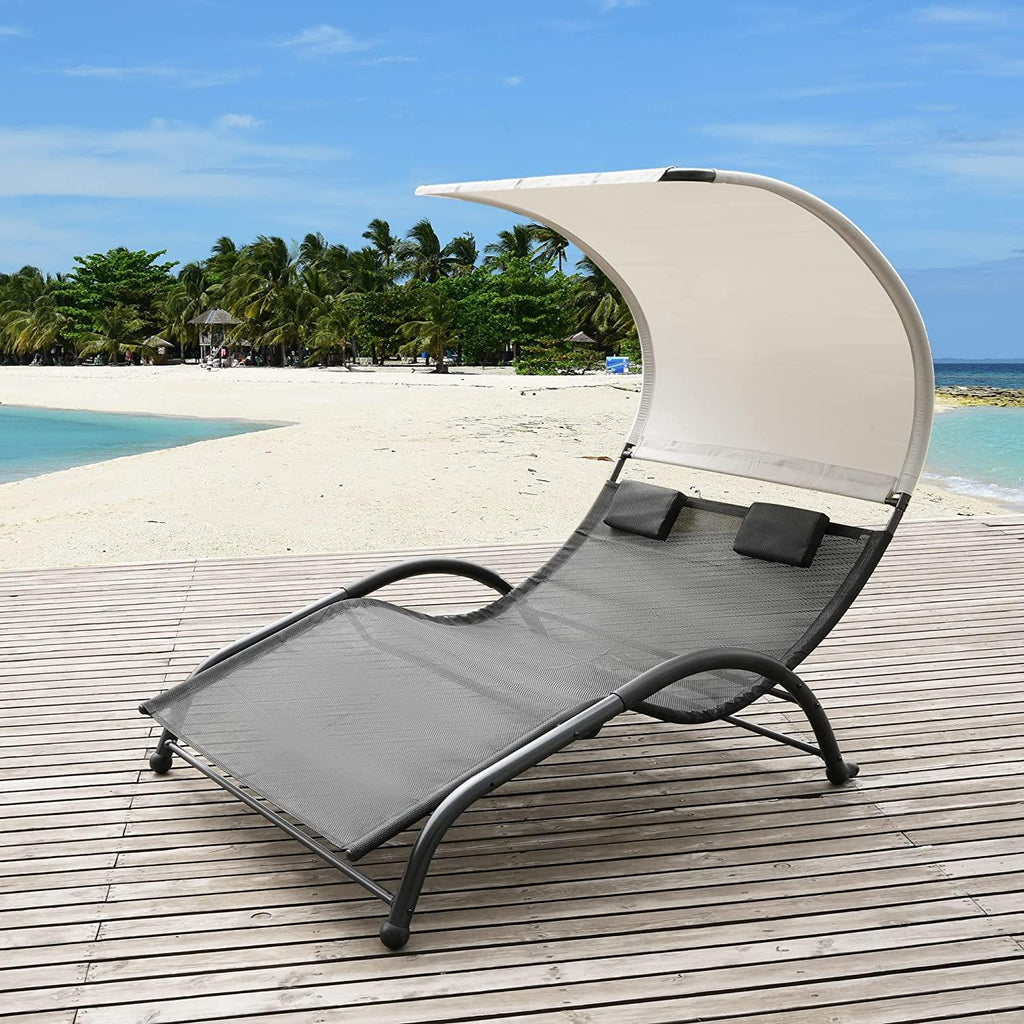 Take a vacation in the outdoor delicated double bed with canopy. unique and ergonomic seat design gives you with 0 gravity comfort experience. It features an easy-to-maintain sling seat and back material as well as a powder-coated steel frame for use resistance. With the modern design, relax the day away with a good book, nap or a loved one. The lounger comes complete with 2 headrest pillows and a sunshade canopy to rest and relax in the shade.