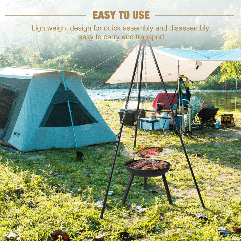 - Our lightweight tripod grill is easy to carry and transport. Take it to a nearby park or camping adventure with ease, and enjoy an effortless and hassle-free trip.